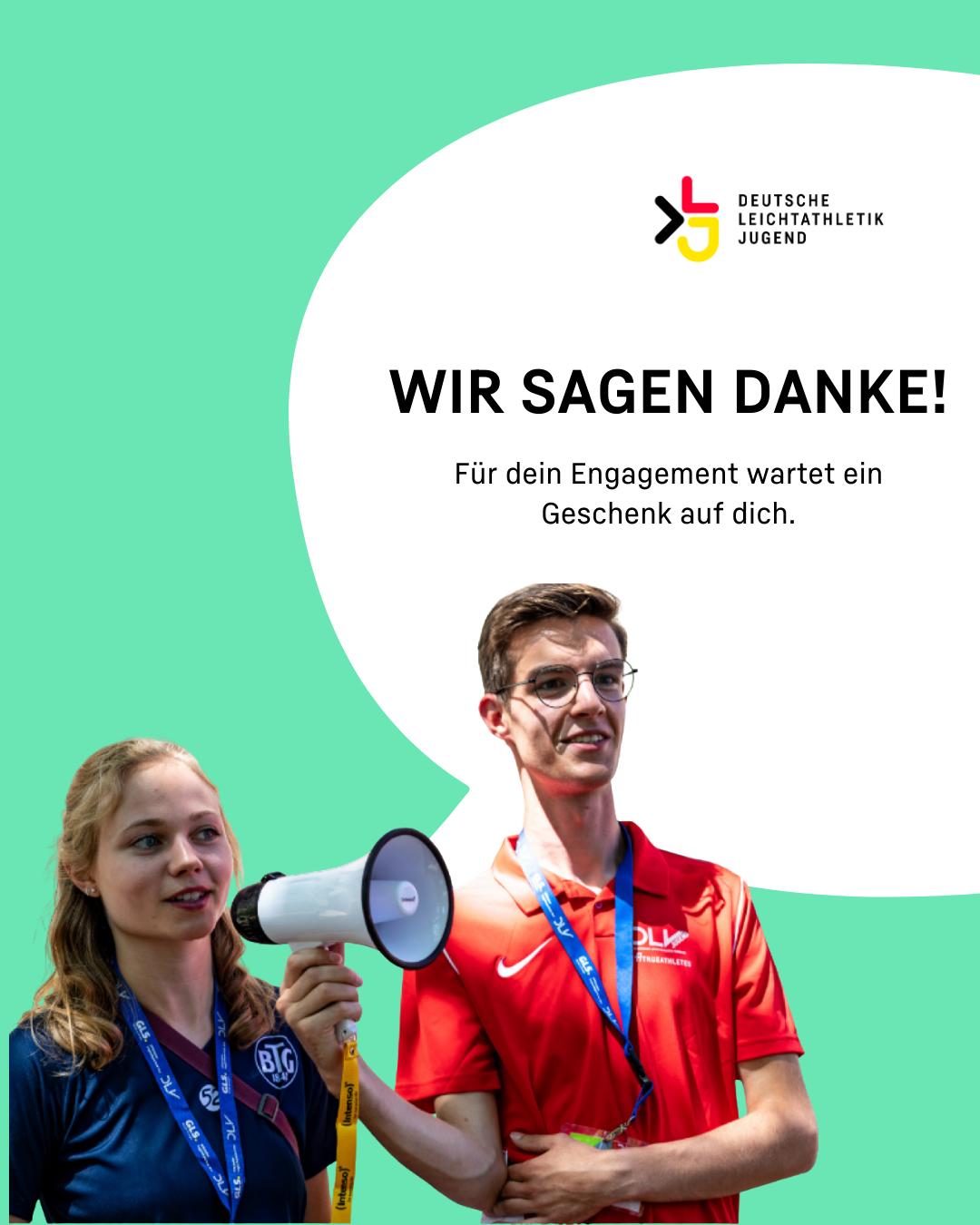 Für das Engagement in verschiedenen Bereichen vergibt die Deutsche Leichtathletik-Jugend 1.000 Dankeschön-Pakete. Dafür muss die Person zwischen 14-26 Jahren alt sein und sich in einem der folgenden Bereiche besonders einbringen: