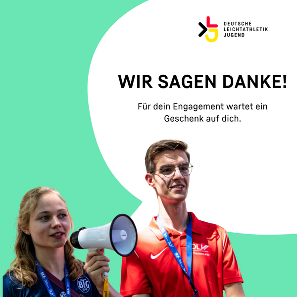 Für das Engagement in verschiedenen Bereichen vergibt die Deutsche Leichtathletik-Jugend 1.000 Dankeschön-Pakete. Dafür muss die Person zwischen 14-26 Jahren alt sein und sich in einem der folgenden Bereiche besonders einbringen:
