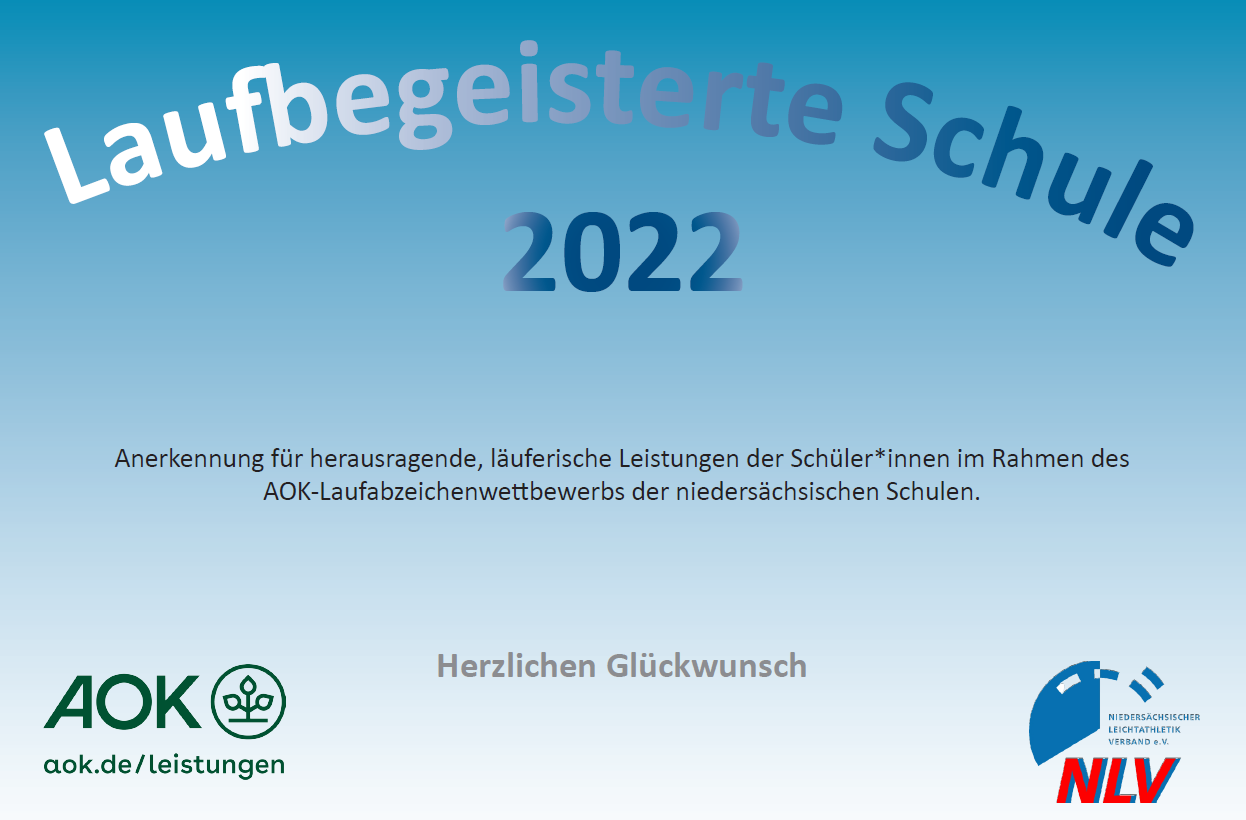 Für das tolle Engagement der Schüler*innen, der Lehrer*innen und der Schulleitung bedanken sich die AOK Niedersachsen und der Niedersächsische Leichtathletik-Verband ganz herzlich und gratulieren allen Schüler*innen, Schulen und verantwortlichen Lehrer*innen.