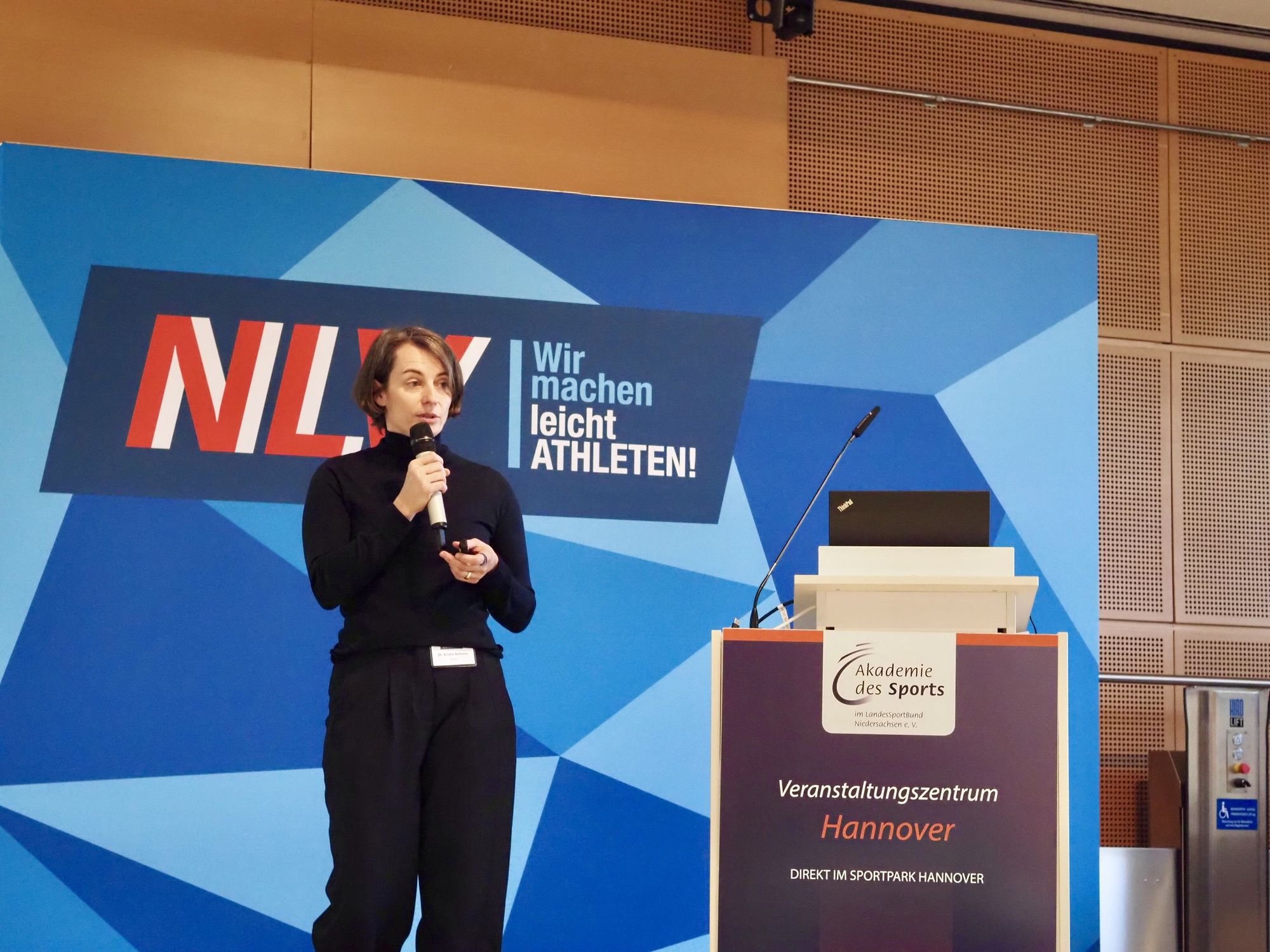 Neben den Berichten aus den unterschiedlichen Bereichen stellten sich auch die neuen NLV-Mitarbeiter*Innen den Delegierten vor: Sandra Wallenhorst (neue Landestrainerin Lauf Nachwuchs), Jan de Vries (Dualer Student), Martha Fahrenkrug, Jaqueliné Gippner, Hanna Kubelke und Klara Dyszack (alle BFD im Sport) sprachen direkt zu Beginn der Tagung einen Gruß aus und erzählten von ihren neuen Tätigkeiten. Zudem wurde die langjährige NLV-Mitarbeiterin Eva-Maria Fahrenholz gebührend verabschiedet, die in der Geschäftsstelle die Funktion der Finanzbuchhaltung inne hatte.