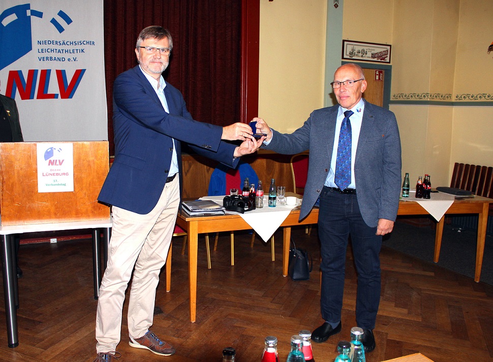 Nach dem Mittagessen gesellten sich zu dem dann beginnenden Bezirksverbandstag noch die Ehrengäste. Neben den stellvertretenden Landrat des Kreis Stade, Herrn Hans-Jürgen Detje, sowie den Vizepräsidenten Finanzen des VfL Stade, Gunnar de Buhr, begrüßte Schirner die anwesenden Delegierten. NLV-Präsident Uwe Schünemann konnte erst später dazu stoßen (Stau auf der Autobahn).