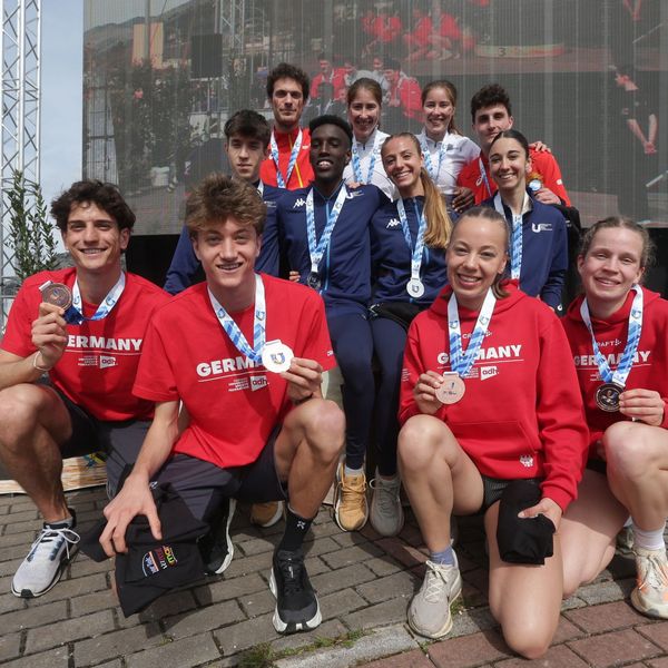 Hindernisspezialistin Carolin Hinrichs (VfL Löningen/ IU Internationale Hochschule) stellte sich dabei gleich an beiden Tagen an die Startlinie. Nachdem die 22-Jährige ihren Einzelstart auf der Kurzdistanz am Samstag an Position 26 beendete, gelang ihr am zweiten Tag im Staffelwettbewerb der Sprung auf das Podest: Gemeinsam mit ihren DLV-Kolleg*innen Felix Wittmann, Tobias Tent und Adia Budde bestritt sie das Mixed Relay Short Race, das sich insgesamt über 6,4 Kilometer erstreckte und zum Großteil auf einer Rasenfläche mit mehreren Kurven und diversen An- und Abstiegen bestritten wurde. Hinrichs übernahm den Staffelstab als zweite Läuferin an Position sechs und übergab ihn nach gelaufenen 1,6 Kilometern als Teil einer vierköpfigen Spitzengruppe. Ihre Teamkolleg*innen Tent und Budde mussten zum Schluss nur gegenüber Belgien und Italien das Nachsehen haben. Das Quartett beendete das Rennen nach 19:08min und bejubelte im Zielbereich die wohlverdiente Bronzemedaille: „Wir sind alle super happy, dass wir eine Medaille für das ganze Team holen konnten. Der Teamspirit war sehr groß und das ganze Team war an der Strecke versammelt und hat uns angefeuert“, freute sich Hinrichs später gegenüber dem DLV über den tollen Support aus den eigenen Reihen.