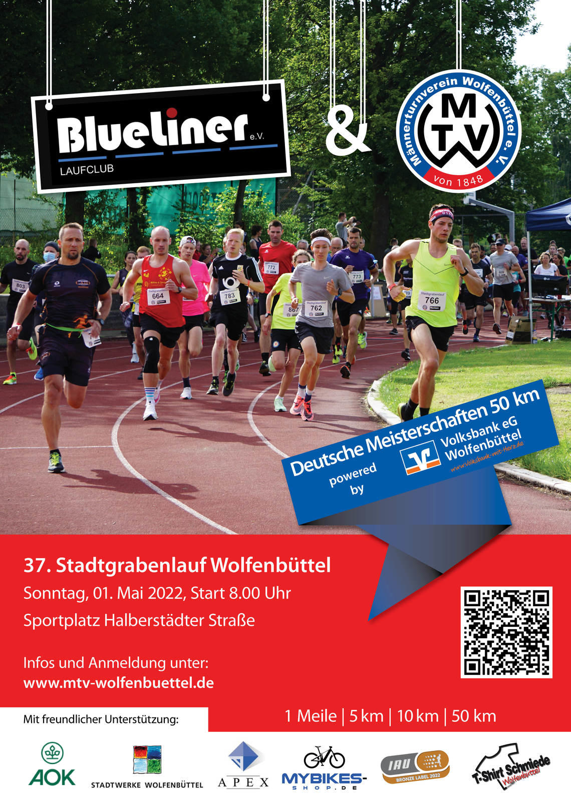 Nach zwei Jahren Improvisation ist es endlich wieder soweit und der Stadtgrabenlauf Wolfenbüttel findet an seinem gewohnten Termin am 1. Mai statt. Vier Wochen vor der 37. Auflage des Wolfenbütteler Traditionslaufes sind bereits über 200 Teilnehmer für die vier angebotenen Distanzen angemeldet, aber die Veranstaltung hat noch Kapazitäten frei. Für den Kinderlauf über eine Meile sind nur noch wenige Startplätze verfügbar, aber auf den 5 und 10 km ist noch reichlich Platz und für die 50 km mit den Deutschen Meisterschaften werden noch einige Anmeldungen erwartet. Nach dem fantastischen Großereignis in Hannover mit über 18000 Teilnehmern und vielen Zuschauern an der gesamten Marathonstrecke, bekommt man Lust auf mehr davon, und Wolfenbüttel bietet am 1. Mai 2022 mit den Deutschen Meisterschaften über 50 km gleich die nächste Gelegenheit den Sport wieder freizügig zu feiern.