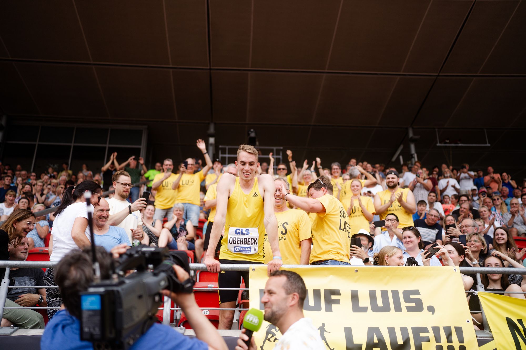 Besonders erfreulich aus niedersächsischer Sicht, der Sieg von Luis Oberbeck über die 800 m. Der Athlet der LG Göttingen legte auf den letzten 100 m seines Rennens einen beachtlichen Schlussspurt hin und ließ die Konkurrenz auf der Zielgeraden stehen. Nach 1:47,48 Minuten überquerte er die Ziellinie und konnte es selber kaum glauben. Fassungslos blickte der erst seit letztem Jahr 800m laufende Athlet in die Zuschauermenge und die Kamera des Fernsehens. Ganz zu Freuden seines aus Göttingen mitgereisten unschwer zu erkennenden Fanclubs. In gelben T-Shirts auf der Rückseite bedruckt mit „einfach mal n bisschen schneller laufen“ wurde Luis von seinen Fans über die zwei Stadionrunden „getragen“. Im späteren Siegerinterview stand Deutschlands schnellster 800m Läufer zusammen mit seinen Fans Moderator Florian Weber gegenüber, ein Bild welches aufgrund des gelben Trikots und der Fans an die Führung der Einzelwertung bei der Tour de France erinnerte.
