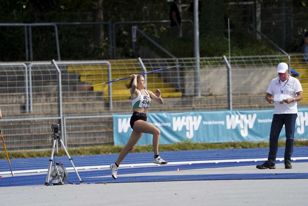 Im Speerwurf gab Christina Lahrs (TSV Wehdel) im 4. Versuch alles: Die U18-Athletin freute sich riesig über die persönliche Bestleistung: 51,99 m. Bis zum Ende musste sie noch zittern - doch die Weite reichte für den Titel.