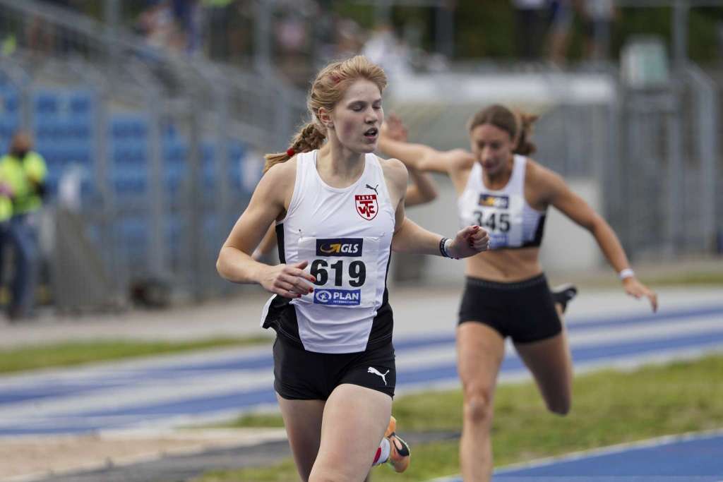 Den Abschluss der Medaillenjagd machte am Sonntag Rieke Emmerich (LC Nordhorn). In einem packenden Finale über 800m holte sie alles aus sich heraus. Mit persönlicher Bestleistung 2:09.39 min. sicherte sich die U18-Athletin den Titel der Deutschen Meisterin.