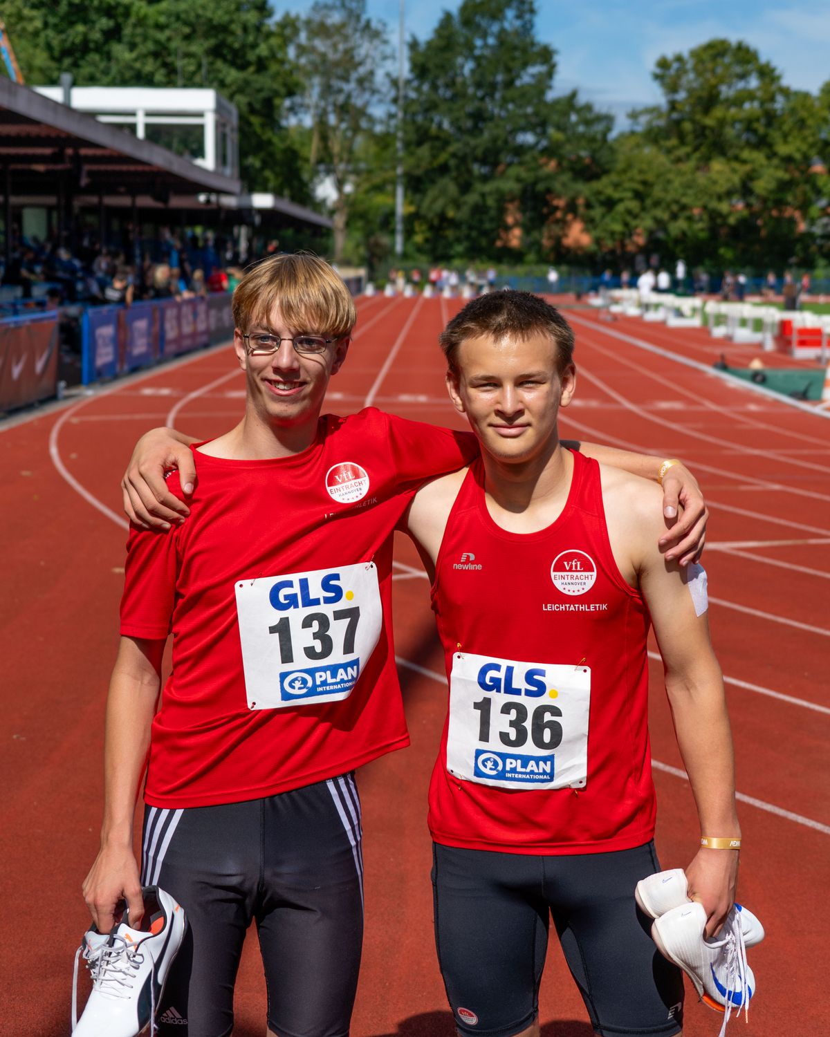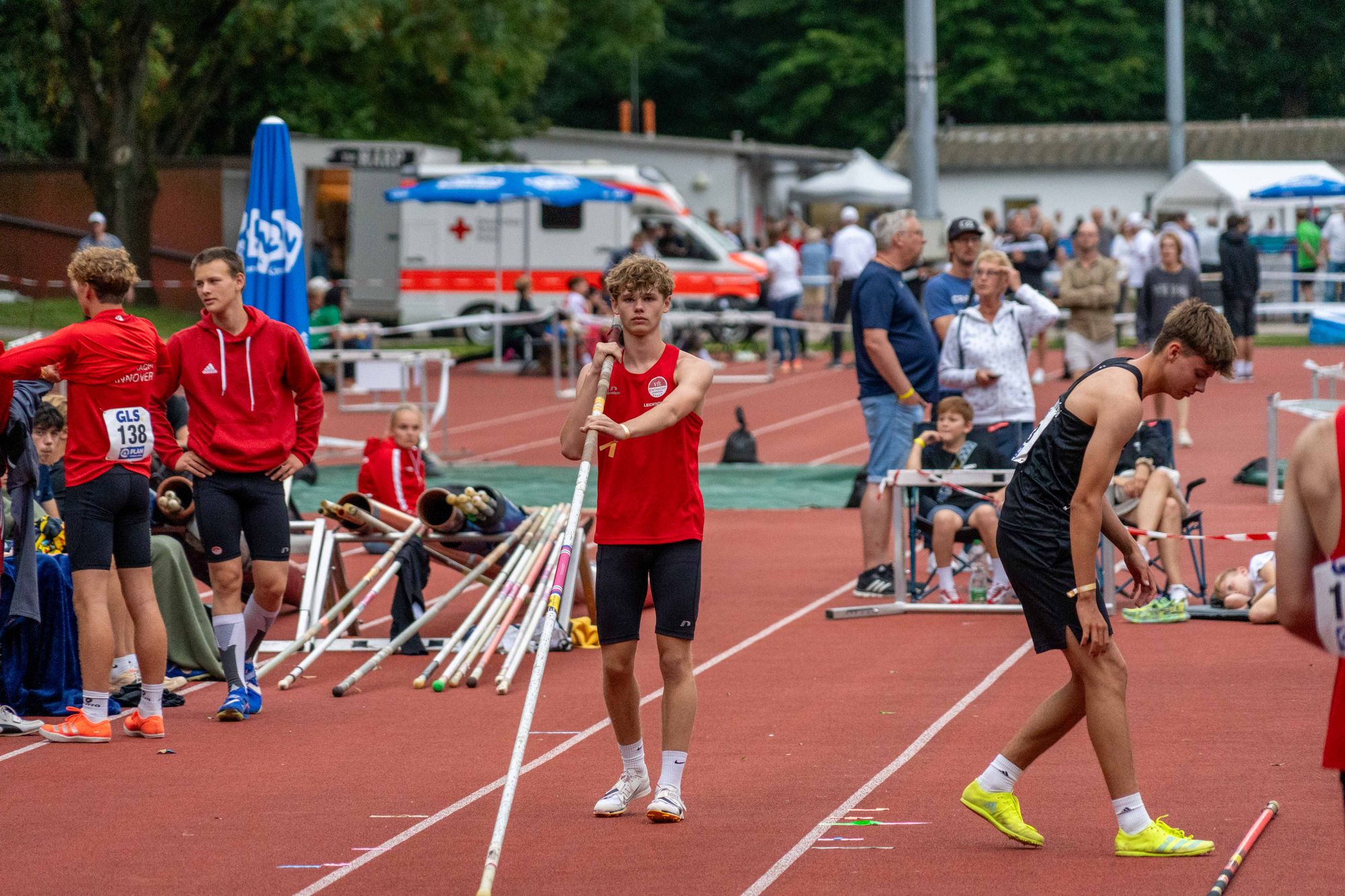 Sie haben heute Abend das Licht im Erika-Fisch-Stadion ausgemacht: Die Neunkämpfer der M15 – 51 Jungs an der Zahl – füllten das Stadion am ersten Tag der Deutschen Meisterschaften mit Leben. Es ist auch die Altersklasse, in der gleich sechs Athleten aus Niedersachsen an den Start gehen. Von ihnen am meisten Punkte eingetütet hat bis dato Weitsprung-Spezialist Mica Schade von der LG Emstal Dörpen. Er liegt mit einer 2.414 Punkten auf einem vielversprechenden achten Rang. Maximilian Weppler (VfL Eintracht Hannover) übernachtet auf Platz 23, sein Vereinskollege Max Lucas auf 26, Henry Ahrenshop (SV Nienhagen) auf Platz 29, Christian Kulp (VfL Eintracht Hannover) auf 41 und der vierte Eintracht-Athlet Jan Linschmann auf der 44.