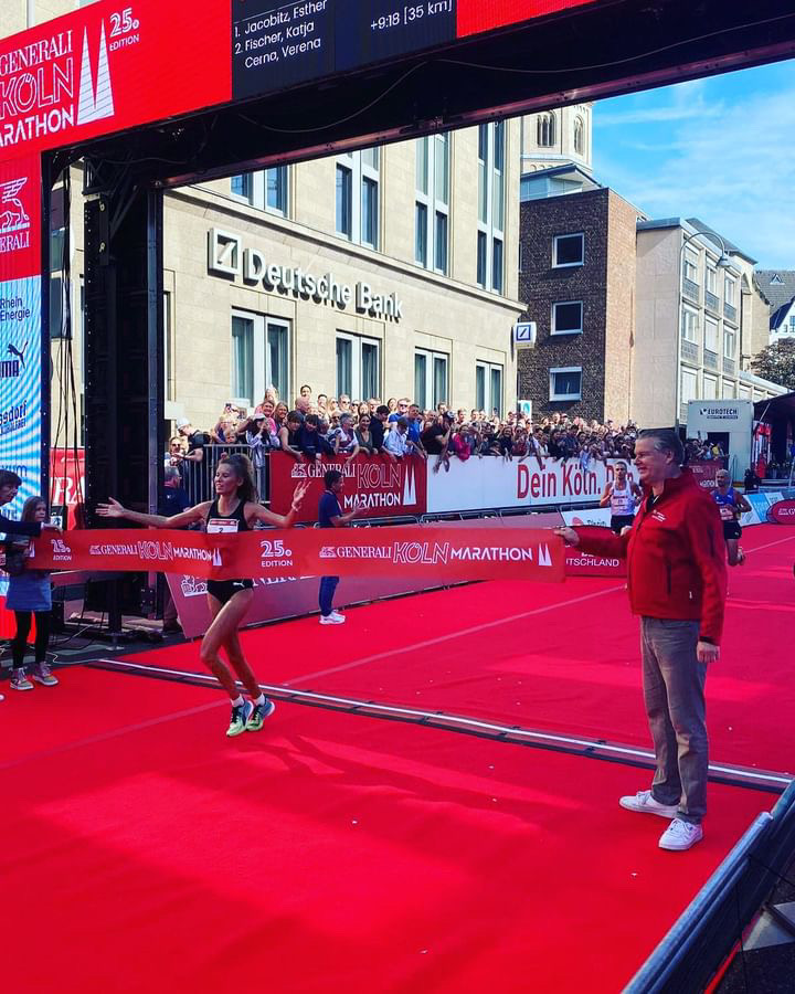 mf: Hitze, Bauchschmerzen und dann auch noch den nagelneuen Verlobungsring verloren: Bei ihrem ersten Marathon, den Esther Jacobitz am ersten Oktober im Rahmen der Deutschen Meisterschaften in Köln absolvierte, lief nicht alles glatt. Was für die ehemalige Mittelstreckenläuferin am Ende aber zählte: Sie erreichte nach 2:37:00 Stunden als erste Deutsche das Ziel und durfte sich über den ersten DM-Titel ihrer Karriere freuen.