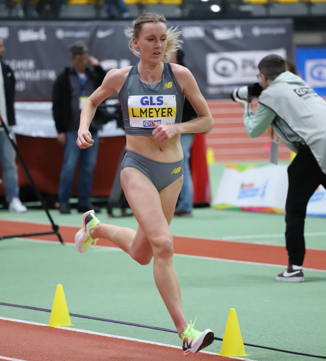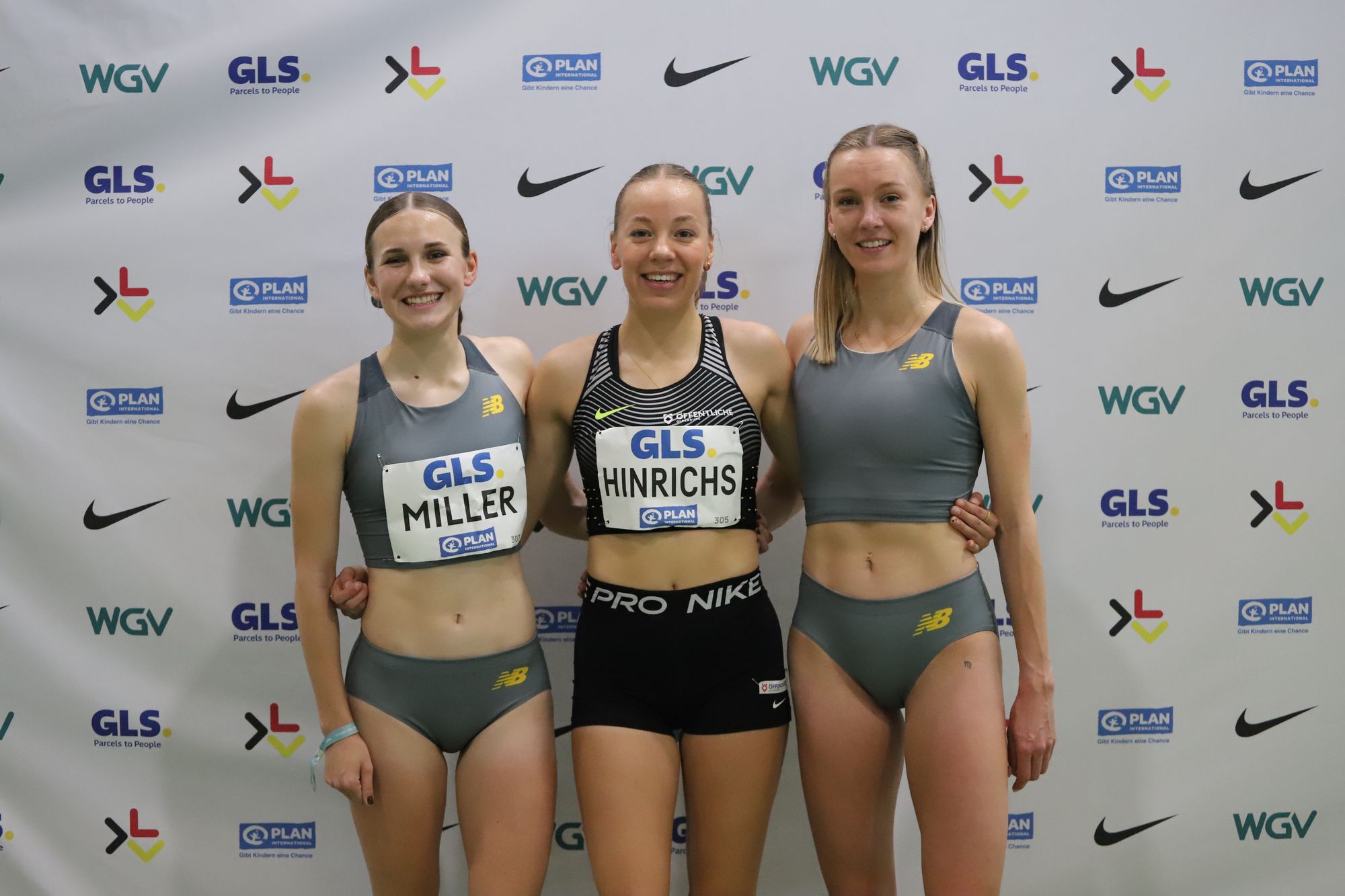 Nicht nur das Osnabrücker Duo, sondern auch ein Löninger Trio erregte am Wochenende die Aufmerksamkeit der rund 4000 Zuschauenden. Bereits am Freitagabend begeisterte Top-Hindernisläuferin Lea Meyer mit ihrem Deutschen Meistertitel über die 3000m-Distanz. Nach 8:53,82min erreichte sie souverän als Erste den Zielbereich. Eine zweite Medaille gelang ihr bei diesen Titelkämpfen allerdings nicht: Nachdem sich die Vize-Europameisterin von München am Tag darauf gemeinsam mit ihren Vereinskolleginnen Lera Miller und Carolin Hinrichs auch für das Finale über die 1500m qualifizierte, sollte es über die kürzere Distanz wohl keine Podestplatzierung werden. Meyer verlor zum Ende des Finallaufs ihre Position unter den ersten Drei und konnte ihre Enttäuschung über Rang vier nur schwer verbergen. Nichtsdestotrotz präsentierten sich alle drei Athletinnen des VfL Löningen von einer starken Seite: Lera Miller – frischgebackene Deutsche Meisterin in der U20 – steigerte ihre persönliche Bestzeit auf 4:18,34min und ordnete sich in der starken Konkurrenz als Siebte ein. Carolin Hinrichs beendete das 1500m-Finale nach 4:23,46min auf Platz zehn.