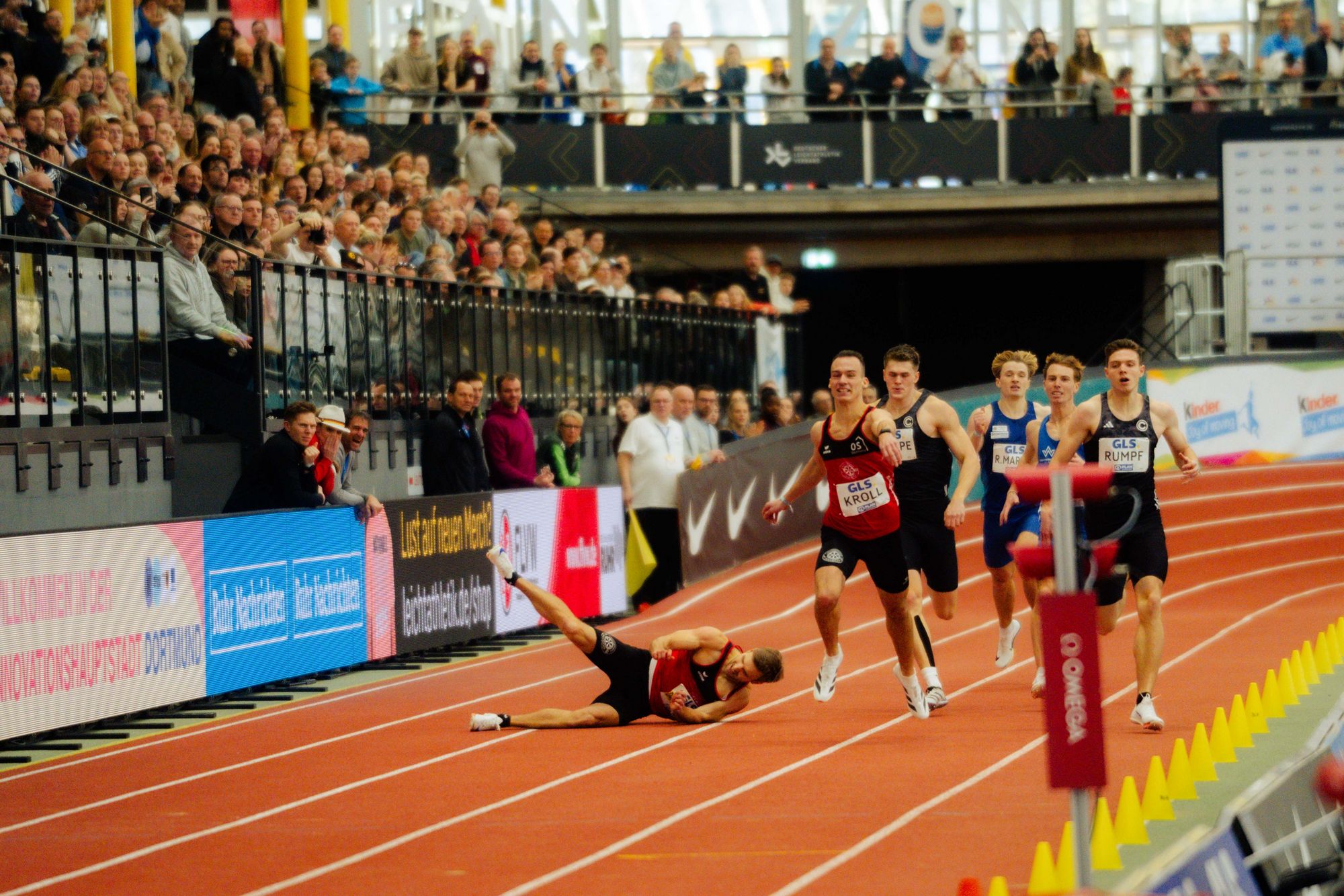 Eine besonders dramatische Geschichte schreiben konnten am Sonntagmittag die 400m-Sprinter der LG Osnabrück: Nach den Halbfinals am Vortag, in denen Top-Favorit Fabian Dammermann keinen guten Tag erwischte und stattdessen sein Teamkollege Florian Kroll in neuer persönlicher Bestleistung von 46,92sek die schnellste Zeit auf sein Konto verbuchen konnte, schien eine Prognose für die finale Medaillenvergabe schwer. Letztendlich trat dann das ein, womit wohl keiner gerechnet hätte: In einem sehr engen und hart umkämpften Rennen, in dem Kroll an Position zwei auf die letzten 200m ging und sich Dammermann währenddessen von hinten durch die Konkurrenz schlängeln musste, fiel die Entscheidung erst auf der Zielgeraden. Fabian Dammermann strauchelte im Überholmanöver, fiel hin und flog damit raus aus den Medaillenrängen. Kroll hingegen triumphierte: Der 20-Jährige stürmte als Erster über die Ziellinie und feierte seinen ersten DM-Titel bei den Erwachsenen. „Damit habe ich nicht gerechnet. Ich freue mich riesig, aber denke natürlich auch an Fabian“, ordnete das Osnabrücker Talent später sein Gefühlschaos. Ebenfalls über die zwei Hallenrunden an den Start ging Niclas Jan Kaluza von der Eintracht Hildesheim. Der Langsprinter war im Halbfinale in einer Zeit von 47,92sek so schnell, wie noch nie und belegte in der Endabrechnung Rang acht.