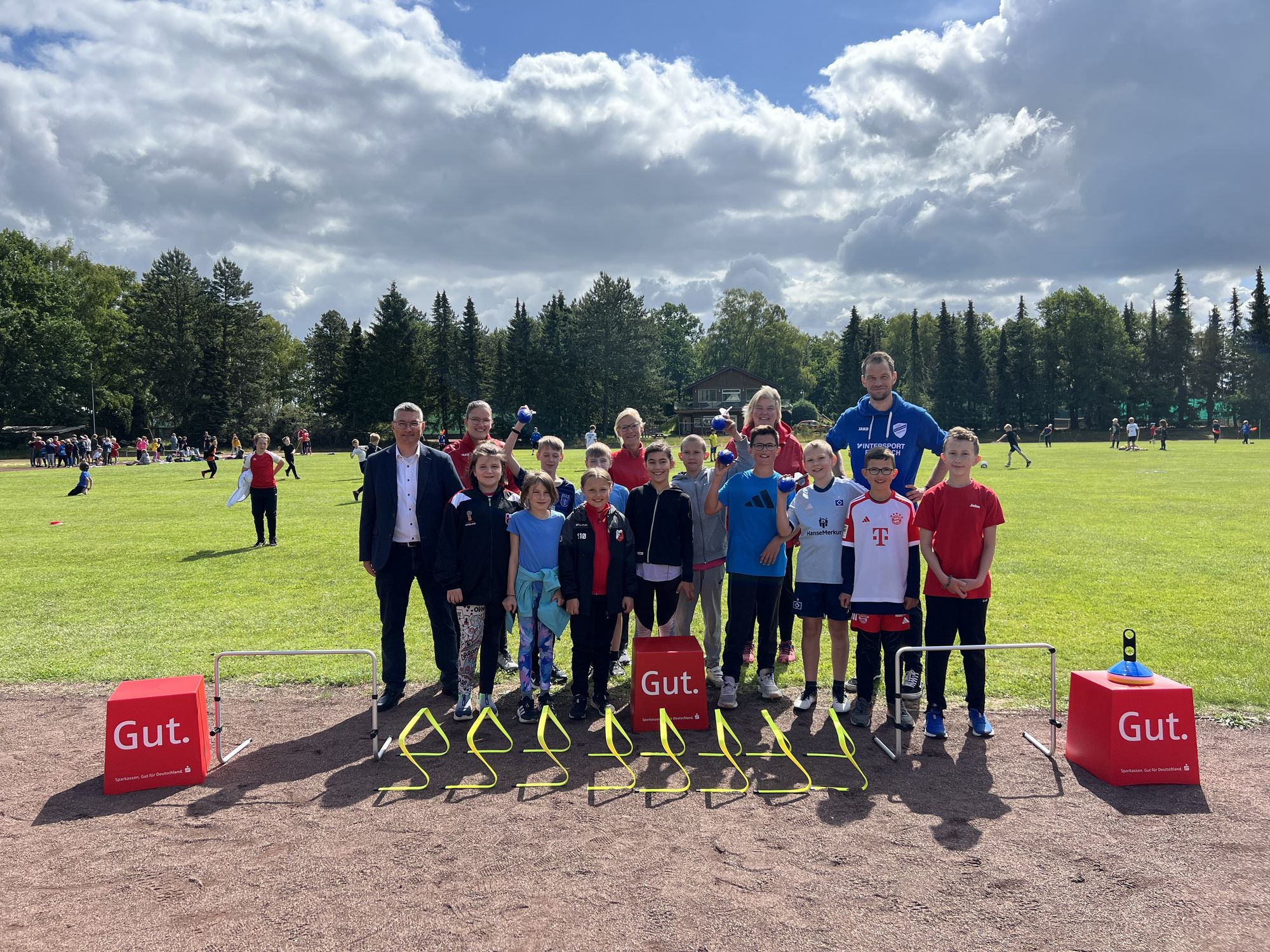 Im Rahmen des Projektes Kila goes School wird das Engagement der Vereine, Grund- und Förderschulen bei der Durchführung von Bundesjugendspielen im neuen Format zu unterstützen, mit einem Materialpaket des Sportgeräte-Spezialisten HaeSt gefördert. Stefan Bültmann von der Sparkasse Harburg-Buxtehude übergab dem TSV Stelle das vielfältige Sportmaterialpaket, welches bereits im Rahmen der Veranstaltung eingesetzt werden konnte.