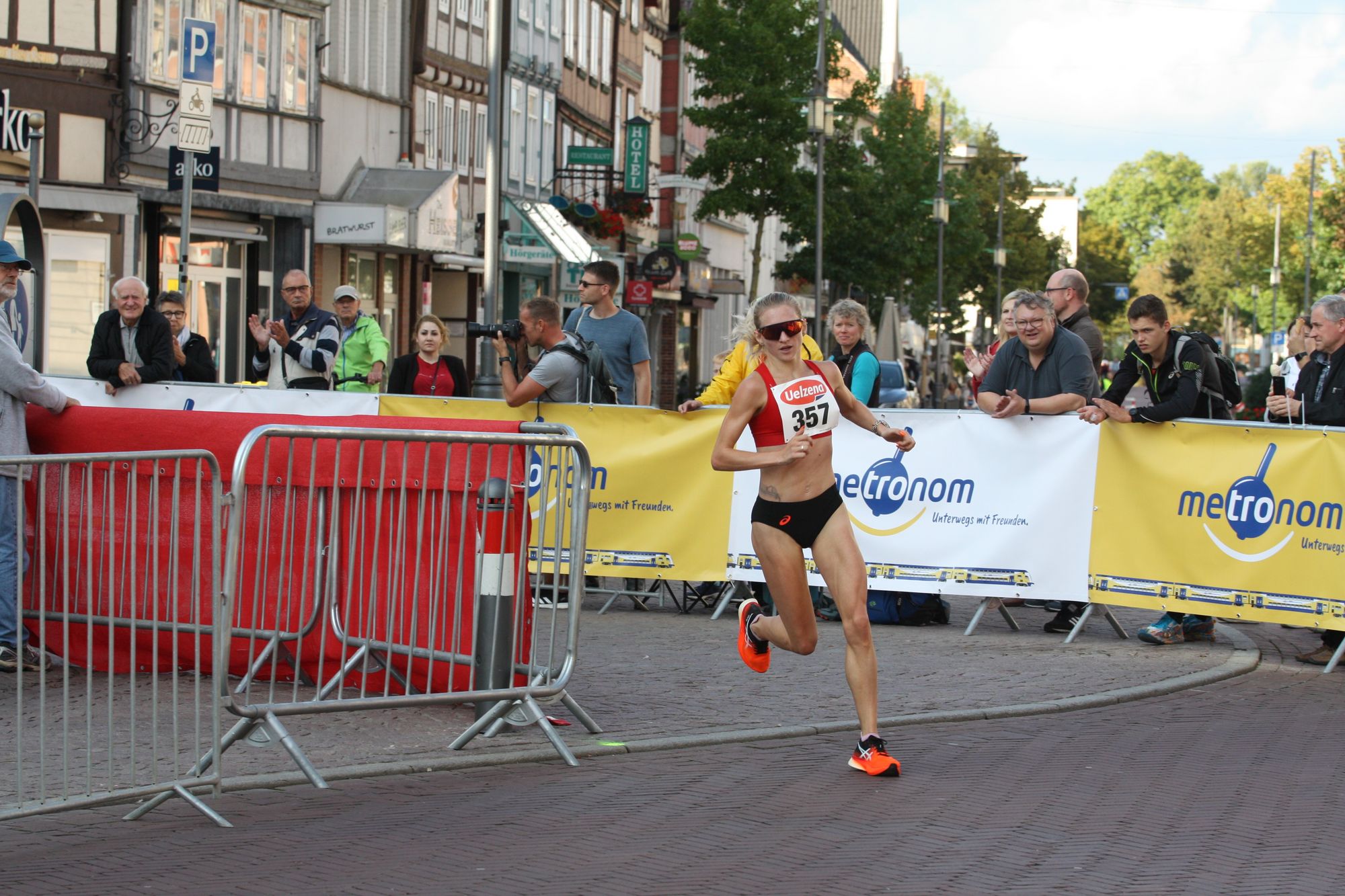 bg – Schon der erste Lauf der Niedersächsischen und Bremer Landesmeisterschaften sorgte für Staunen bei den Zuschauern in der Uelzener Innenstadt. Die für die LG Braunschweig startende Kristina Hendel lief ein einsames Rennen mit großem Vorsprung vor dem Feld. In 34:16 Minuten gewann sie den ersten Titel des Tages. „Die Strecke war anspruchsvoll. Aber wir sind auf dem Rundkurs oft an den Zuschauern vorbeigekommen, die uns kräftig angefeuert haben, das unterstützt einen beim Laufen sehr“, freute sie sich über die gute Stimmung an der Strecke. Mit einem Lächeln im Gesicht lief Jasmina Stahl über die Ziellinie. Die noch der Altersklasse U20 angehörige Athletin wurde zu den Juniorinnen hochgemeldet und holte sich dort souverän in 35:29 Minuten und als gesamtzweite Frau den Sieg. Damit legte sie auch den Grundstein für den Mannschaftssieg durch Hannover 96. In der weiblichen Jugend gingen die Siege an Lina Marie Hülls (FTSV Jahn Brinkum; 45:34 min) in der WJ U18 und an Marlene Klett (Eintracht Hildesheim; 46:09 min), die die siegreiche Hildesheimer Mannschaft in der U20 anführte.