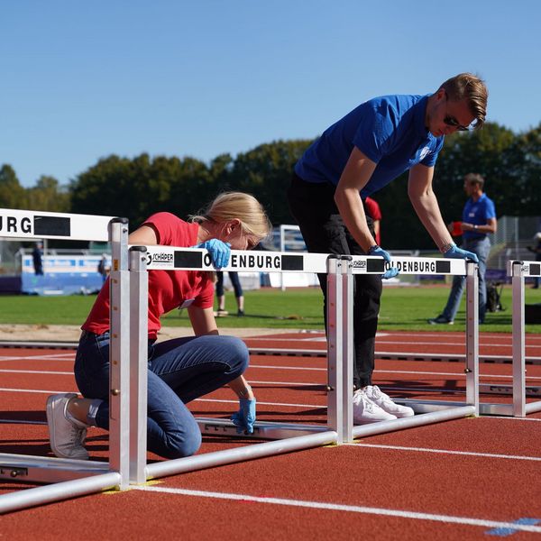 Die Weit- und Dreisprungwettbewerbe werden in Oldenburg wieder direkt vor der Haupttribüne stattfinden, wie der NLV-Vizepräsident Jugend Jan Gutzeit zuletzt mit Freude bekannt gab. Dafür wurde die sonst nur mit Kunstrasen überdeckte Sprunggrube im Vorfeld exklusiv für die Veranstaltung mit Sand befüllt. „Die Weitsprungwettbewerbe gehören zu den beliebtesten Disziplinen in der Leichtathletik. Nicht ohne Grund musste die Wettkampforganisation nach Meldeschluss noch einige Meldungen von der Liste streichen. Wir wollen den Teilnehmerinnen und Teilnehmern optimale Wettkampfbedingungen bieten und ein Erlebnis schaffen, weshalb wir die Anlage im direkten Spotlight bei der Hauptribüne einsatzfähig machen wollten“, meint der Vizepräsident und ergänzt: „Ich danke allen Beteiligten für die Umsetzung im besten Sinne der Athleten.