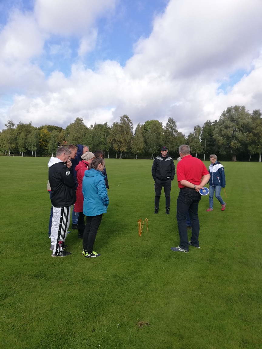 bs. Insgesamt 12 Kampfrichterinnen und Kampfrichter aus Oldenburg und Friedrichsfehn nahmen am 1. Oktober 2022 zum Abschluss der Stadionsaison an einer Kampfrichter-Fortbildung Wurf im Oldenburger Marschwegstadion teil. Die Fortbildung diente der Vermittlung der Regeländerungen, der Vertiefung der Fachkenntnisse und Regelauslegungen sowie dem Austausch der praktischen Erfahrungen. Unter den Teilnehmern waren sowohl erfahrene Schiedsrichter als auch neue Kampfrichter. Referent Jens Arkenau legte sehr viel Wert auf große Praxisanteile direkt an den Anlagen. Als praktische Übung warf er als ehemaliger Athlet den Diskus einige Male in den Sektor und ließ alle Teilnehmer den Punkt des Abdrucks beim Aufschlag markieren. Beim Aufschrei durch Vortäuschen einer Zerrung testete er, inwieweit der Blick dennoch konzentriert weiter am Gerät blieb oder ob eine Ablenkung mit Blick auf den Athleten erfolgte. „Die Fortbildung verlief kurzweilig, praxisbezogen, lebendig und durchaus auch humorvoll. Das abschließende Feedback war durchweg positiv und alle haben dazugelernt“, resümiert Lehrgangsleiterin und Kampfrichterwartin Oldenburg-Stadt Birgit Surmann. „Neben der Wissensvermittlung ist es auch schön, sich bei Aus- und Fortbildungen besser kennenzulernen und auszutauschen.“