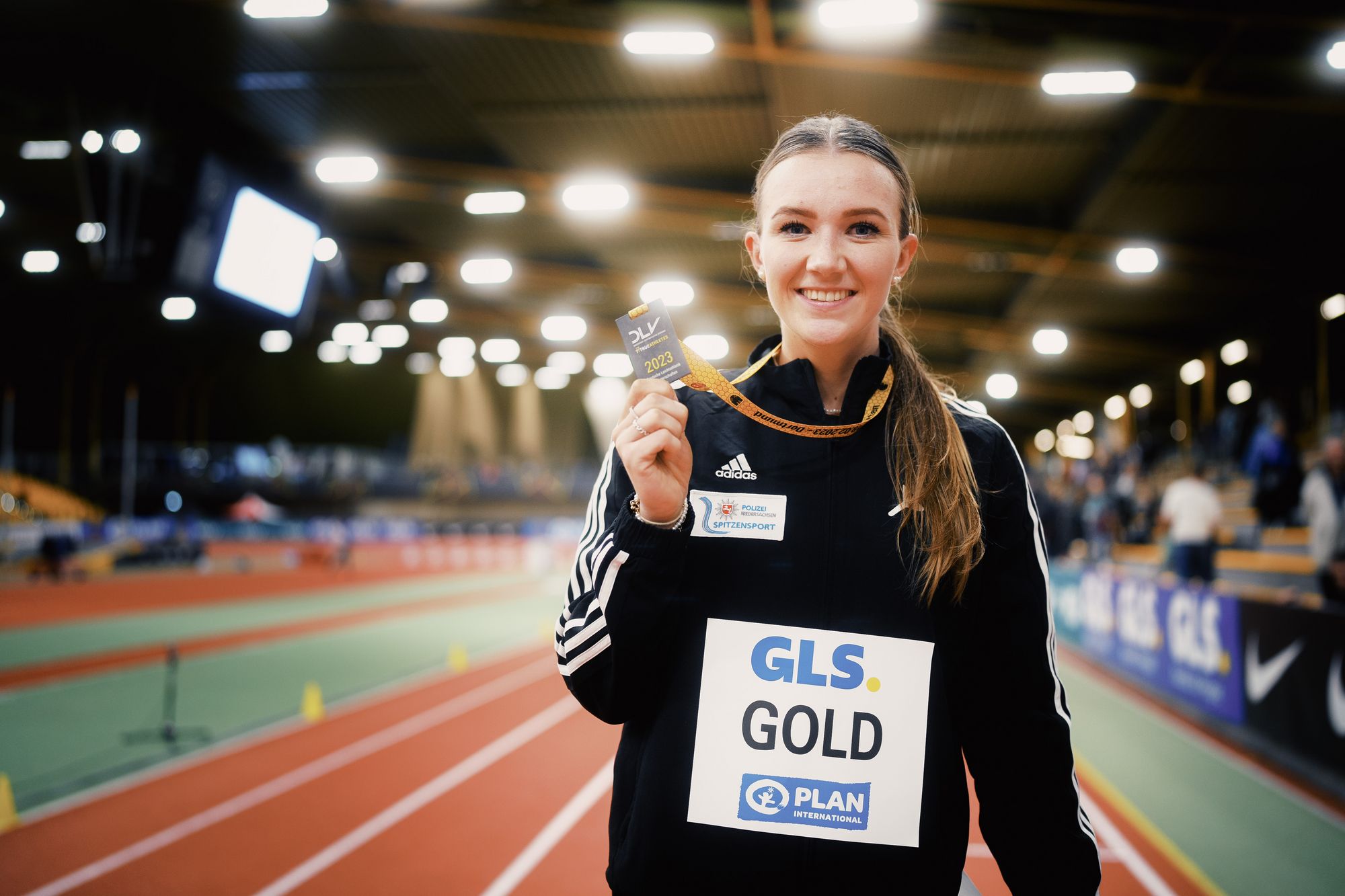 In Dortmund schaffte Kira Wittmann am vergangenen Wochenende ihren perfekten „Gold-Moment“. Vor ausverkauften Rängen in der Helmut-Körnig-Halle sprang die Dreispringerin der LG Göttingen am Samstag erstmalig über die 14m-Marke. Im vierten Durchgang gelang es Wittmann, getragen von der unglaublich guten Stimmung, ihren Wettkampf erinnerungswürdig zu machen. Hop-Stepp-Jump und die 22-jährige landet jenseits der 14-Meter in der Grube. Kurz abwartend, ob der Sprung denn tatsächlich gültig ist, wurde sie bereits von ihren Emotionen überwältigt. Als die Weite dann auf dem Monitor erschien, konnte die Polizeianwärterin es selbst kaum glauben! 14,08m sind gleichbedeutend mit einer neuen persönlichen Bestleistung, dem Deutschen Meistertitel und obendrein noch der Normerfüllung für die anstehenden Halleneuropameisterschaften im türkischen Istanbul vom 02.-05. März. Im Siegerinterview bedankte sich Wittmann bei den knapp 4000 Zuschauer*innen für die Stimmung und die Begeisterung. Man kann wohl sagen, dass die Zukunft des deutschen Dreisprungs ebenfalls aus Niedersachsen kommt. Vereinskollegin Neele Eckhardt-Noack hatte auf einen Start in dieser Hallensaison verzichtet. Via Instagram verkündete die EM-Vierte, dass sie aktuell ihr erstes Staatsexamen ihres Jurastudiums absolviere und daher erst wieder im Sommer ins Wettkampfgeschehen zurückkehre.