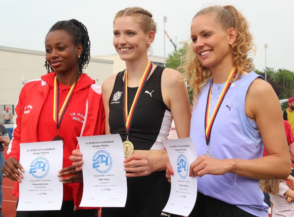 Im Vorprogramm des KURTULUS Springer-Meetings konnten sich auch einige Niedersachsen in Szene setzen. Im Hochsprung der männlichen Jugend U18 verbesserte sich Jason Lee Hoppe (LC Hansa Stuhr) auf 2,02 m und egalisierte damit die deutschen Jahresbestleistung. Auf Rang 3 Julian Karsten (VfL Wolfsburg) mit verbesserten 1,88 m. Leon Michelmann (TSV Asendorf) gewann in dieser Alterklasse den Dreisprung mit 13,29 m vor Matti Hirschner (Hannover 96) und dem M15 Athleten Jacob Lück (LG Weserbergland).