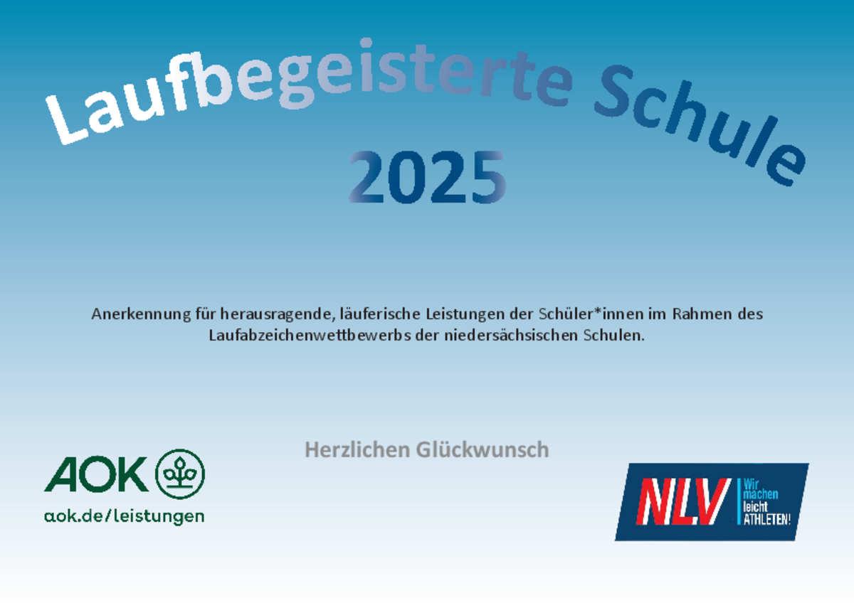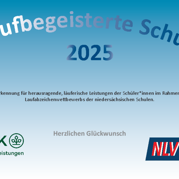 Der Niedersächsische Leichtathletik-Verband und die AOK Niedersachsen gratulieren den Schulen ganz herzlich und bedanken sich bei allen Schüler*innen, Lehrkräften und weiteren Verantwortlichen für das tolle Engagement.