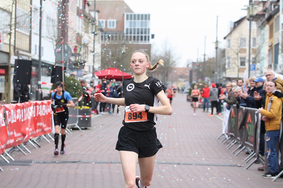 Auch im Lauf der Frauen und Senioren ab M50 lief ein schnelles Duo gemeinsam vorweg: Katharina Saathoff (Braunschweiger Laufclub) investierte viel und drückte immer wieder aufs Tempo, am Ende war es jedoch Nele Heymann (TuS Haren), die in neuer Bestzeit von 34:55 Minuten als Siegerin die Ziellinie überquerte und sich auch den Titel in der U23 sicherte. Katharina Saathoff egalisierte ihre Bestzeit von 35:05 Minuten. Eine neue Bestzeit sprang für Ann-Christin Opitz (SC Melle), die sich in 36:16 Minuten über Bronze freuen durfte. Der Mannschaftstitel mit großem Vorsprung an das Team von Hannover 96 in der Besetzung von Lisa Huwatscheck, Lena Brunkhorst und Katja Krause vor der Lüneburger SV und den Lokalmatadorinnen des SV Rosche.