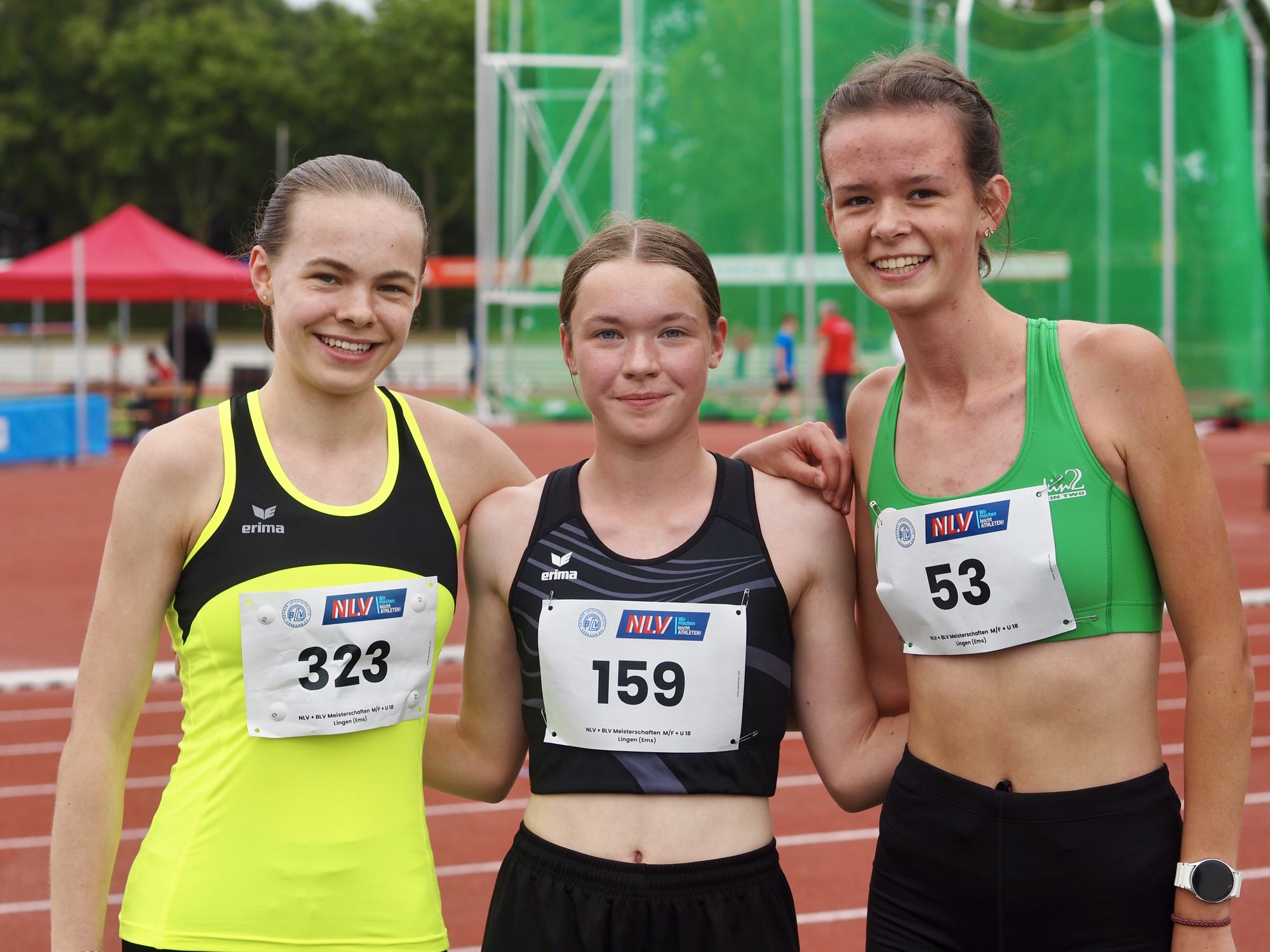 Im Frauenfeld tummelten sich am Wochenende auch einige Jugend-EM-Teilnehmerinnen. So unter anderem die 800m-Spezialistin Paula Terhorst, an der am Sonntagnachmittag kein Weg vorbeiführte: Als jüngste Athletin der Konkurrenz beendete das Talent vom VfL Löningen ihr Rennen nach 2:07,87min und war damit zwei Sekunden schneller als ihre Vereinskollegin Xenia Krebs, die Vizemeisterin wurde und sich am Tag zuvor über die 1500m zu Landesmeisterin gekrönt hatte. Der VfL Löningen war stark vertreten: Über die 5000m der Frauen dominierte Carolin Hinrichs das Feld und ließ die Uhren nach 16:44,75min stoppen.