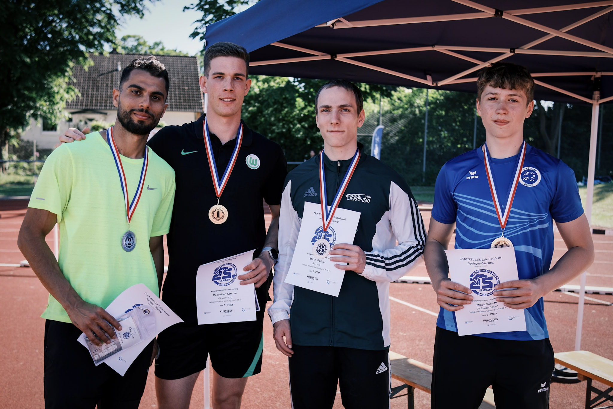 Im Weitsprung der Männer gewann Maximilian Karsten. Dem Mehrkämpfer vom VfL Wolfsburg fehlten mit 7,37m nur vier Zentimeter zur neuen persönlichen Bestleistung. Bruder Julian – noch Athlet der U18 – wurde mit 6,98m Vierter. Er war zuletzt bei der Garbsener Bahneröffnung erstmals über sieben Meter gesprungen. Der U16-Springer Micah Schade (LG Emstal Dörpen) freute sich hier über eine neue persönliche Bestleistung von 6,54m.