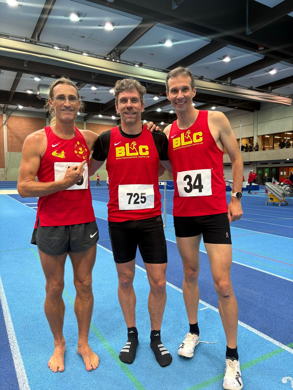 Im Rahmen der NLV+BLV Hallen-Meisterschaften, die am vergangenen Wochenende in Hannover stattgefunden haben, wurden auch die Meistertitel in den Langstaffelwettbewerben der Männer und Frauen vergeben. Die Startgemeinschaft „Triple B“ konnte hier zwar nur außer Wertung an den Start gehen, bejubelte im Zielbereich allerdings einen ganz besonderen Erfolg: Andreas Kuhlen, Peter Fräßdorf und Christian Wiese konnten mit ihrer 3x1000m-Staffel einen neuen Deutschen Hallenrekord in der M40 aufstellen. Das Trio beendete sein Rennen nach nur 8:13,54min und unterbot die bisherige Bestmarke damit um ganze 59 Sekunden.