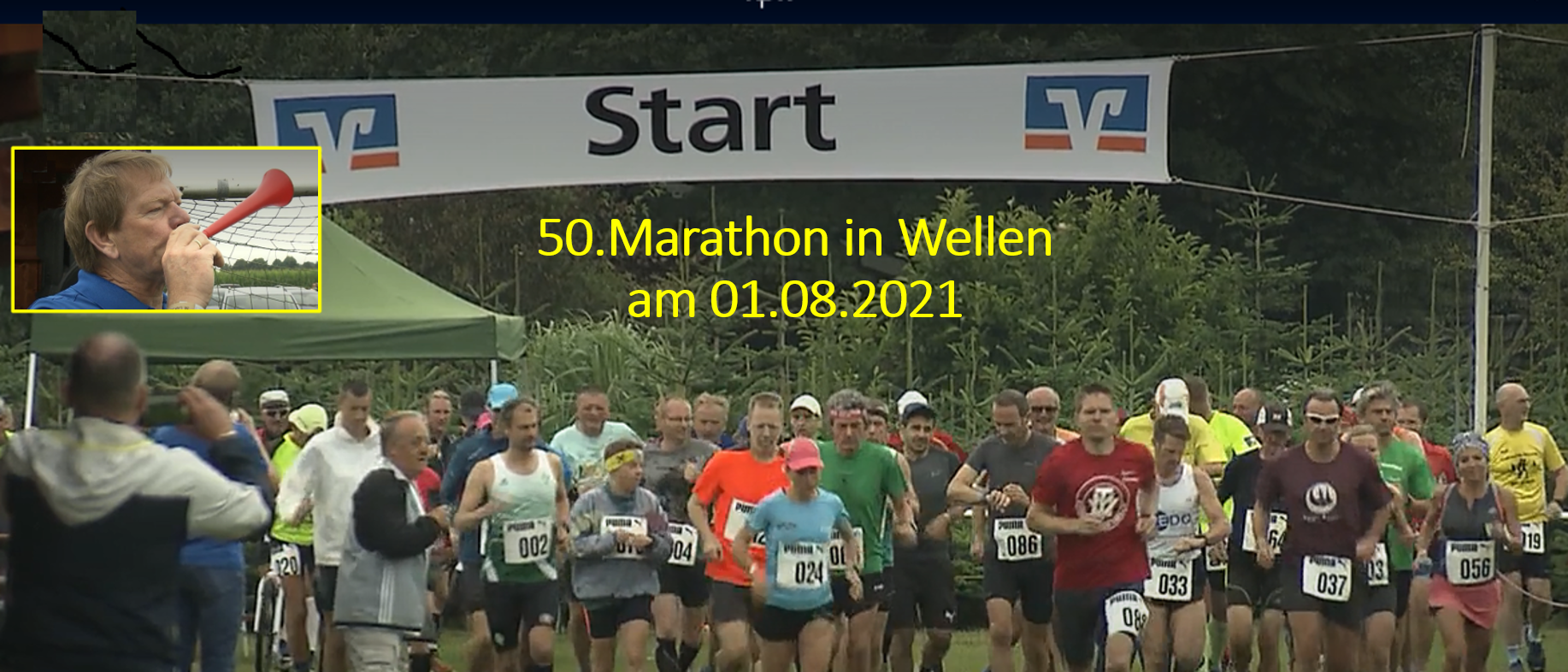 au/vle. Für die insgesamt fast 400 Aktiven standen diverse Läufe im Angebot. Neben dem 42,195 Kilometer langen Marathon, der sich zum fünfzigsten Mal jährte, fanden ein Halbmarathon, eine 11 Kilometer-Distanz, ein 5 Kilometer-Lauf und Kinderläufe statt. Der Marathon in dem 360 Einwohner zählenden Ort ist wohl der viertälteste Deutschlands und wahrscheinlich der älteste in Niedersachsen. Die Strecke, überwiegend Asphalt, ist nicht gerade schnell, aber dafür sehr abwechslungs- und waldreich. Seit 1971 richtet der TSV Wellen mit seinen vielen ehrenamtlichen Vereinshelfern, der Freiwilligen Feuerwehr und dem DRK den Lauf aus und sorgt für ein familiäres Ambiente und für reichlich Läuferversorgung unterwegs. Ausnahme war nur das vergangene Jahr, wo durch Corona die Durchführung nicht möglich war, so die Vereinsvorsitzende Grit Klempow vom TSV Wellen 1919 e.V. Trotz Hygienekonzept und den konzeptkonformen Einschränkungen für Läuferinnen und Läufer konnten in diesem Jahr sogar mehr Aktive gezählt werden, als in den Jahren zuvor, so der langjährige Sprecher Horst Schumacher vom TSV. Der Start erfolgt in Wellen, wie in den 49 Jahren zuvor, nicht mit Startpistole sondern mit einem Starthorn und zur Begrüßung und als Jubiläumsstarter war Andreas Ull, Vizepräsident des Niedersächsischen Leichtathletik-Verbandes, eigens nach Wellen gereist. Die Einlaufzeiten wurden dort, wie schon immer, händisch gestoppt und die Urkunden zügig im Outfit der 70-ziger Jahre auf einer mechanischen Schreibmaschine oder per Hand geschrieben. Computer-Ausfälle kennt man in Wellen eigentlich nicht, hier will man auch zukünftig an zuverlässiger und bewährter Tradition festhalten.