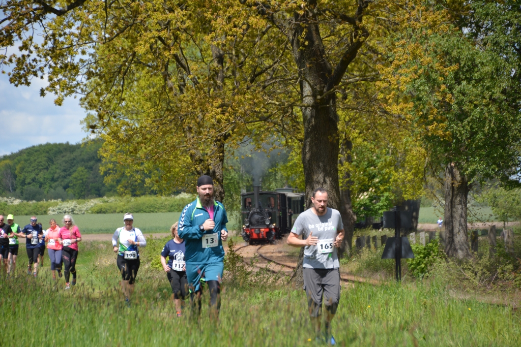 ur - (13.05.2019) Wenn über dem Luftkurort Bruchhausen-Vilsen schwarzer Rauch den Himmel verdunkelt, wenn das Pfeifen einer Dampflok an den Beginn der Industrialisierung erinnert, dann ist die Welt in der Samtgemeinde in Ordnung. Und wenn dann noch Sonnenschein und moderate Temperaturen für eine angenehme Stimmung sorgen und der Wind in der richtigen Richtung von Bruchhausen-Vilsen nach Asendorf bläst, dann sind alle Vorbedingungen für eine erfolgreiche Veranstaltung „Mensch gegen Maschine“ getroffen. Ein Event, das Freunde der Museumsbahnen gleichermaßen anzieht wie Anhänger der Leichtathletik, die ihre Kräfte mit der Maschine messen wollen. Zum vierten Mal trafen sich zum Muttertag insgesamt etwa 200 Männer, Frauen und Kinder (erstmals auch mit dabei ein Vierbeiner außer Wertung), um den Kampf „Mensch gegen Maschine“ aufzunehmen. Veranstalter sind die Samtgemeinde Bruchhausen-Vilsen, der Deutsche Eisenbahn-Verein und der Niedersächsische Leichtathletik-Verband.