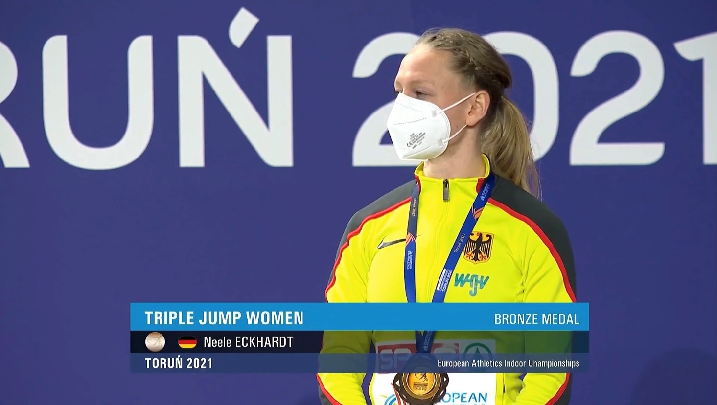 Für Neele Eckhardt war es nach einem ersten Platz bei der Studenten-Weltmeisterschaft, der Universiade, im Jahr 2017 die zweite internationale Medaille in ihrer Karriere. In ihrem Siegerinterview bei den Deutschen-Hallenmeisterschaften in Dortmund hatte Eckhardt noch ihre Pläne für den Sommer geteilt, möglichst früh die Olympianorm von 14,32 Metern abhaken zu wollen, um entspannt auf das große Highlight im Sommer hintrainieren zu können. Nun hat die Göttingerin bereits vor Beginn der Freiluftsaison die Olympianorm in der Tasche und darf sich bei verletzungsfreiem Saisonverlauf auf ihre erste Teilnahme an Olympischen Spielen freuen. Mit ihrer Bronze-Medaille und neuen Bestleistung konnte Eckhardt ihrem Heimtrainer Frank Reinhardt, der exakt am Wettkampftag seinen Geburtstag feierte, ein ganz besonderes Geburtstagsgeschenk machen.