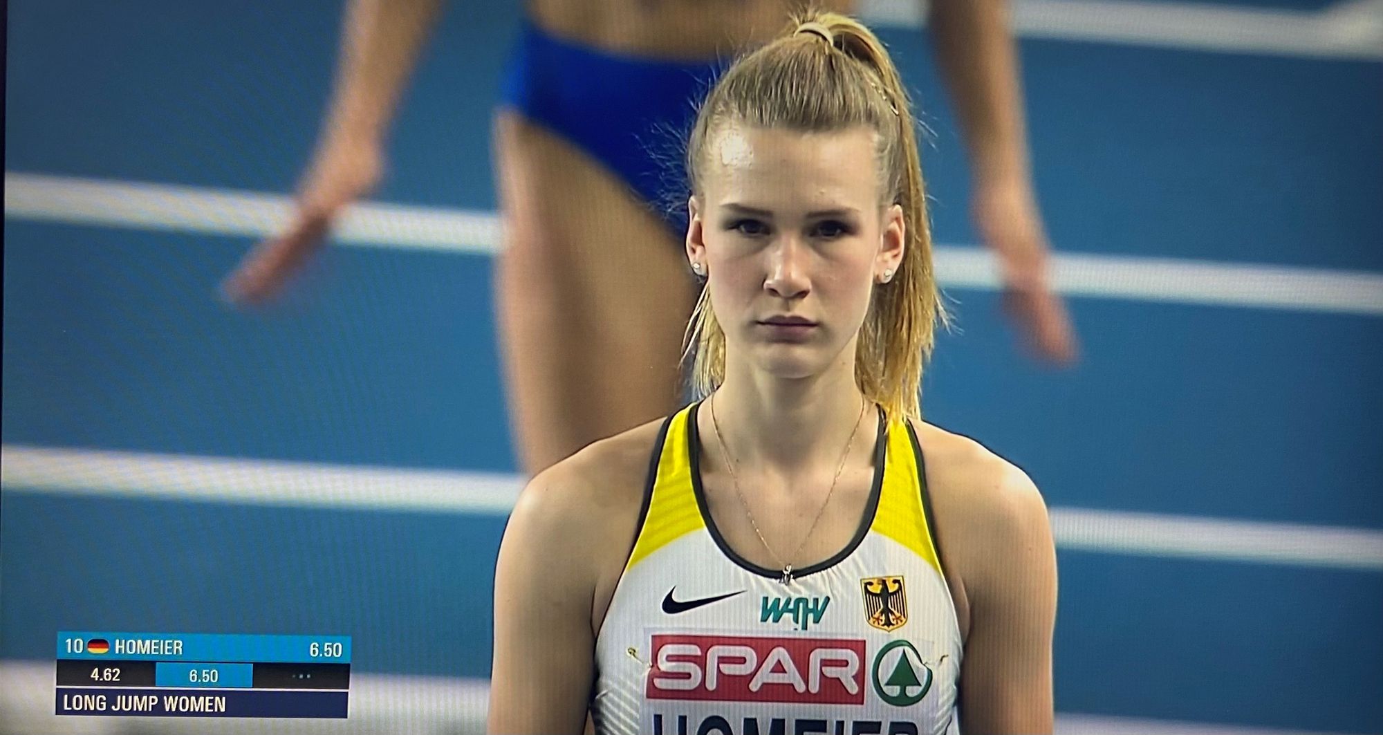 Bereits wenige Tage zuvor konnte sich Frank Reinhardt über das Abschneiden seiner zweiten Athletin in Torun Merle Homeier (LG Göttingen) freuen. Die U23-Athletin absolvierte bei ihrer ersten internationalen Meisterschaft in der Aktiven-Altersklasse einen unaufgeregten und guten Wettkampf. Sie sprang mit 6,50 Metern erneut im Bereich ihrer Bestleistung, die sie mit 6,55 Metern wenige Wochen zuvor in Dortmund aufgestellt hatte. Am Ende fehlten der Nachwuchs-Springerin lediglich fünf Zentimeter für das Erreichen des Finals, sie wurde Elfte. „Ich bin sehr zufrieden mit der Weite und auf einem guten Weg zur U23-EM im Sommer“, bilanzierte Merle Homeier ihre Leistung in Polen.