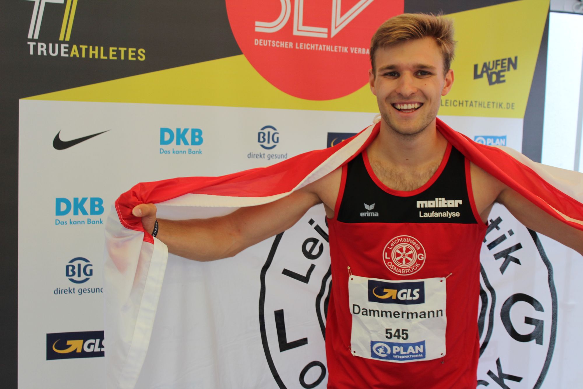 Für ein weiteres Highlight des Wochenendes sorgten Dammermanns Vereinskollegen über die 4x400 Meter der männlichen Jugend U20. Schon seit mehreren Jahren veranstaltet der DLV im Rahmen der deutschen Meisterschaften die deutschen Jugend-Meisterschaften der Langstaffeln. Nach Platz 8 im Vorjahr war nun das große Ziel, das Podium zu erreichen. Verstecken brauchten sich Adrian Düring, Finn Stuckenberg, André Rohling und Felix Hasselmann nicht, so waren sie doch mit der deutschen Jahresbestleitung angereist. Nachdem diese bereits im Vorlauf (3:19,04 Minuten) verbessert wurde, setzte das Quartett der LG Osnabrück im Finale auf beeindruckende Weise noch einen drauf. Schlussläufer Felix Hasselmann überquerte in 3:16,32 Minuten als Zweiter die Ziellinie. Am Ende musste man sich nur dem SC Potsdam geschlagen geben.