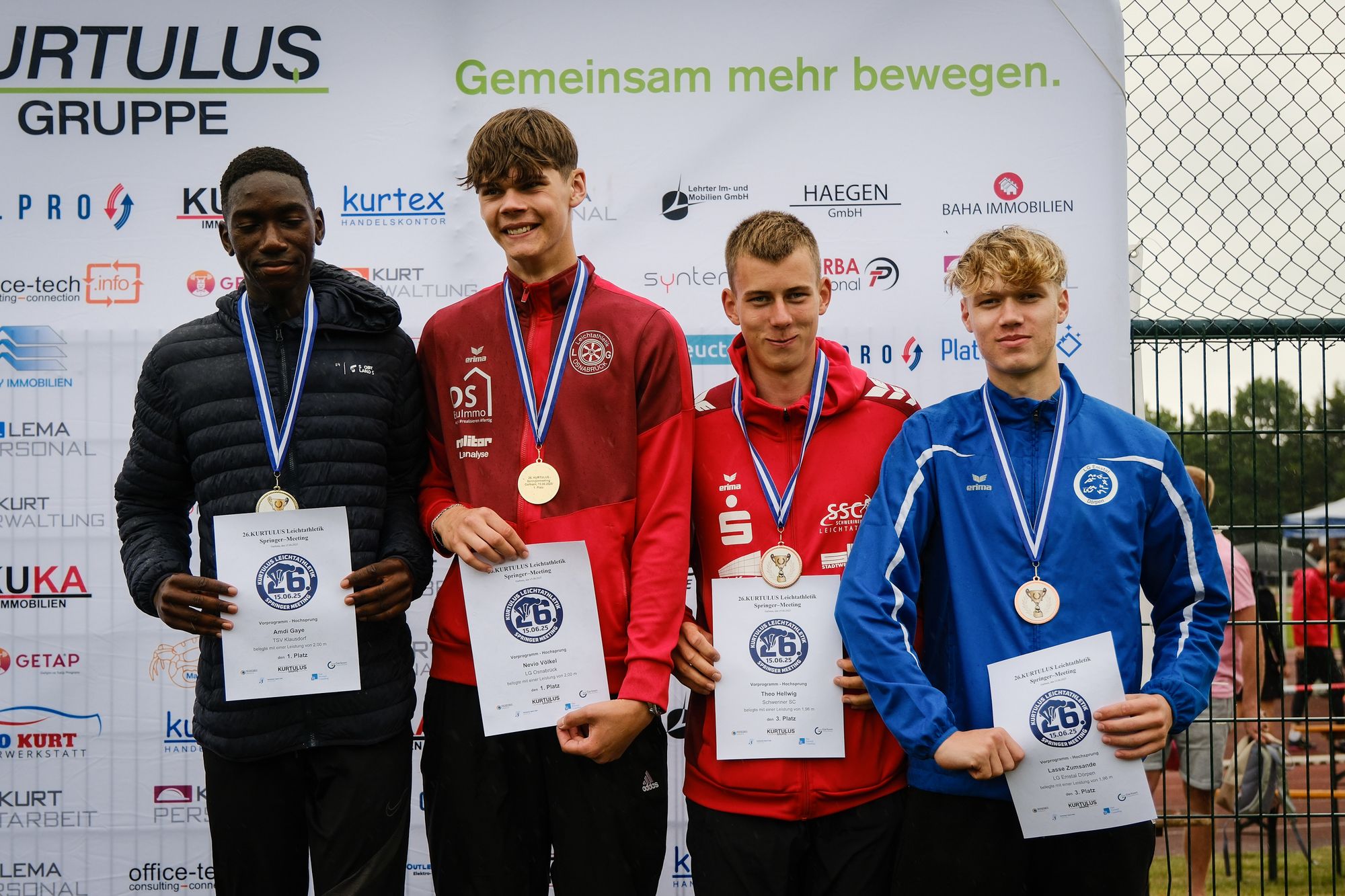 Im Hochsprung der weiblichen Jugend U18 siegte unterdessen Carolin Evers (LC Hansa Stuhr). Mit 1,74 Meter stellte sie ihre persönliche Bestleistung ein. Auch der Dreisprung war fest in niedersächsischer Hand: Jana Blanke (VfL Löningen) gewann mit 11,07 Meter und verfehlte ihre Bestleistung nur um 7 cm. Rang zwei ging an Amelie Schütte von der LG Weserbergland. Im gleichen Wettbewerb war ihre Vereinskollegin Lotta Henrike Werner mit 12.55 Meter in der WJ U20 erfolgreich. Nevio Völkel (LG Osnabrück) und Julian Karsten (VfL Wolfsburg) hießen die Sieger im Hoch- bzw. Weitsprung der männlichen Jugend U20.