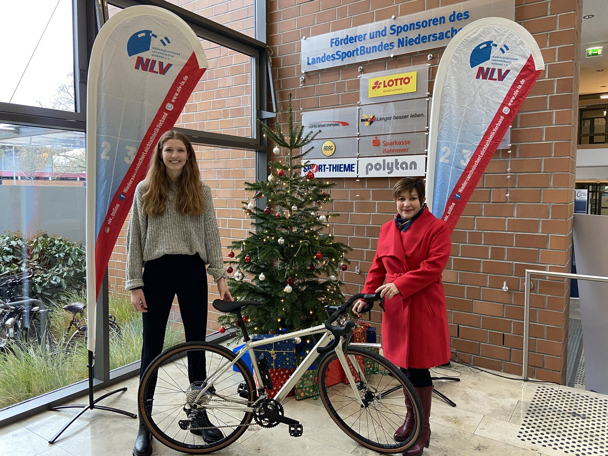 Der Niedersächsische Leichtathletik-Verband e.V. unterstützt den jungen Sayed sehr gerne mit einer Spende, um mit dem Rennrad so erfolgreich wie möglich sein Abitur zu absolvieren. Nachdem Sayed mit seinem neuen Rennrad von Barsinghausen zur Akademie des Sports nach Hannover radelte, überreichten ihm Hochspringerin Imke Onnen und Ute Friese (Aktion Kindertraum) symbolisch die Spende.