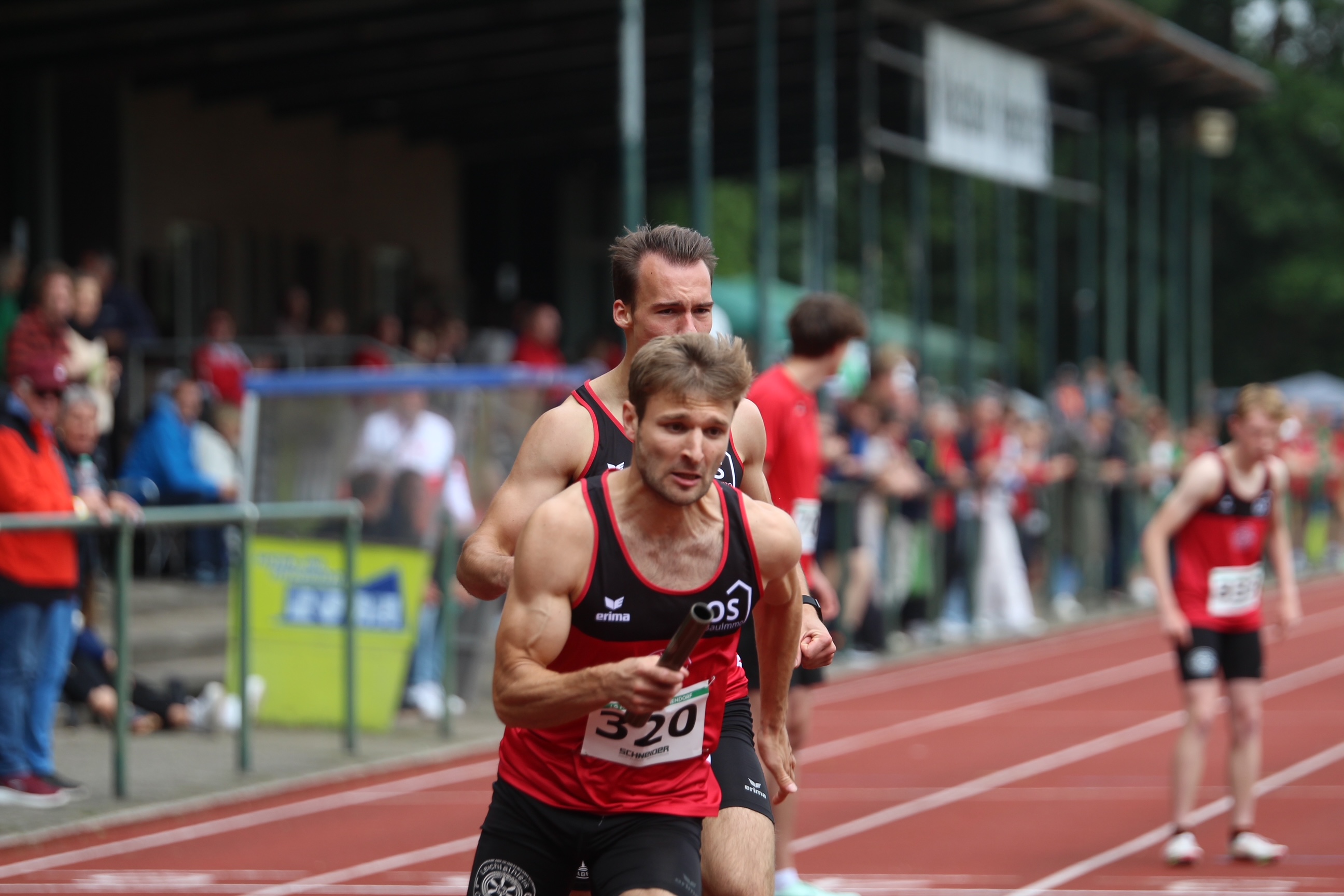 Auch über die 4x400 Meter ging es schnell weiter: Erneut stellt die LG Osnabrück die nationale Spitze durch den Lauf auf 3:13,15 Minuten Minuten durch Fabian Kroll, WM-Starter Fabian Dammermann, André Rohling und Dominik Köpke.