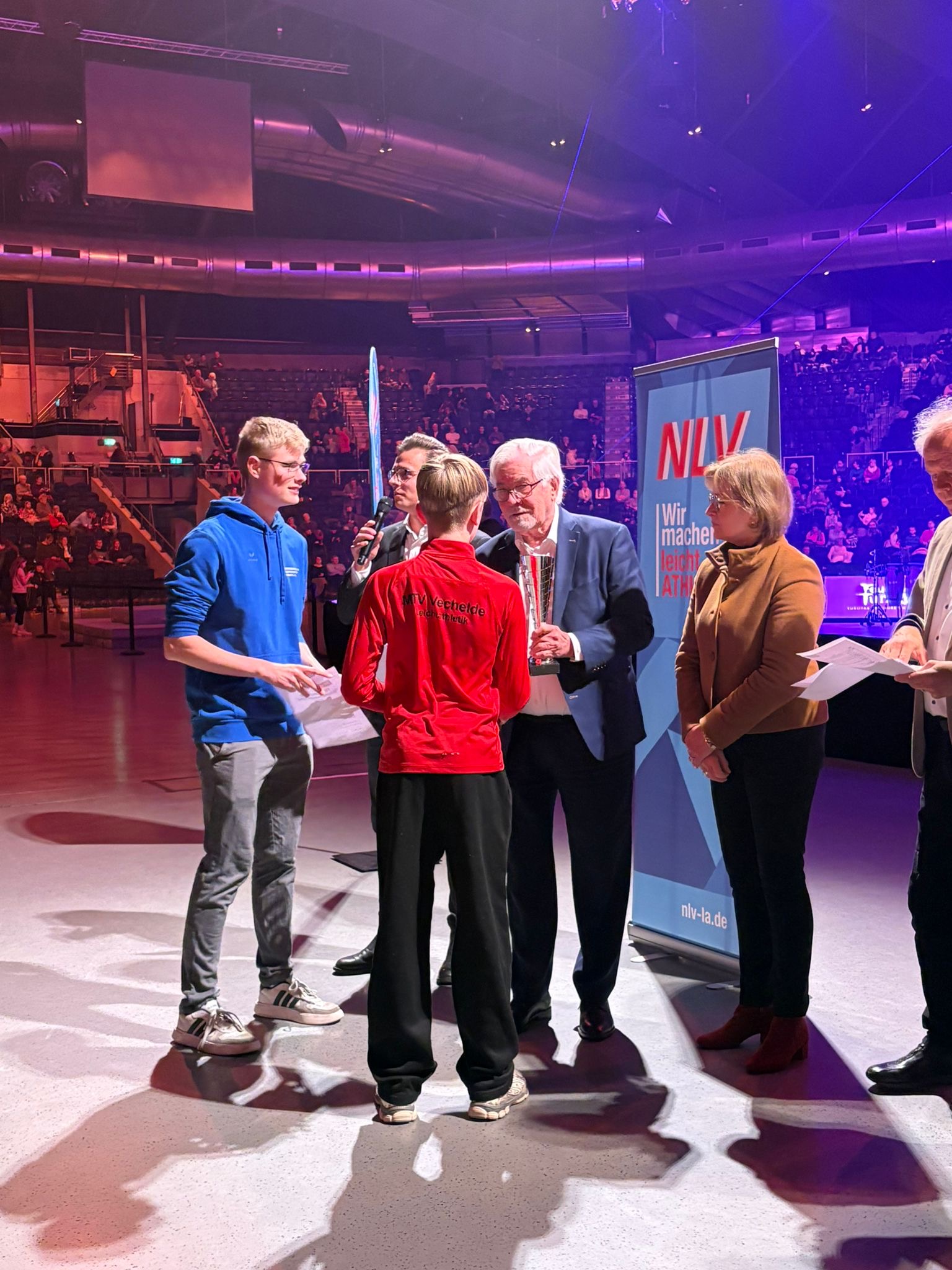 Für die Siegerteams des Vereinswettbewerbs 2025 war die Ehrung ein besonderes Highlight. Gemeinsam mit ihren Eltern und Begleiter*innen erlebten sie die feierliche Auszeichnung vor mehreren tausend Zuschauerinnen und Zuschauern in der ausverkauften Volkswagen-Halle. Die Einladung bot ihnen zugleich die Gelegenheit, die spektakuläre Show ,,VIVA Tournee - Feuerwerk der Turnkunst“, mit hochklassigen akrobatischen Einlagen, zu genießen.