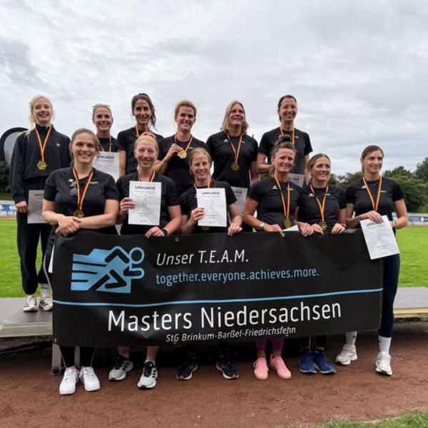 Es waren die vorletzten Nationalen Titelkämpfe in diesem Jahr – und sie standen ganz unter dem Motto „Teamwork makes the dream work“: Bei den Deutschen Team-Meisterschaften der Masters, die am vergangenen Sonntag in Leverkusen ausgetragen wurden, konnte die Startgemeinschaft Brinkum-Barßel-Friedrichsfehn den Wettbewerb in der W30 für sich entscheiden. Die zwölfköpfige Mannschaft sammelte insgesamt 7.050 Punkte und setzte sich in der Endabrechnung gegen drei weitere Vereine durch. Besonders viele Punkte erbrachte den Niedersächsinnen der Sieg ihrer 4x100m-Staffel – sie brachte das Staffelholz nach 51,31sek ins Ziel -, der schnelle Sprint von Lieske Meiners über die 100m, 10,67m von Kira Borgerding im Kugelstoßen sowie ein Doppelsieg im Diskuswurf.