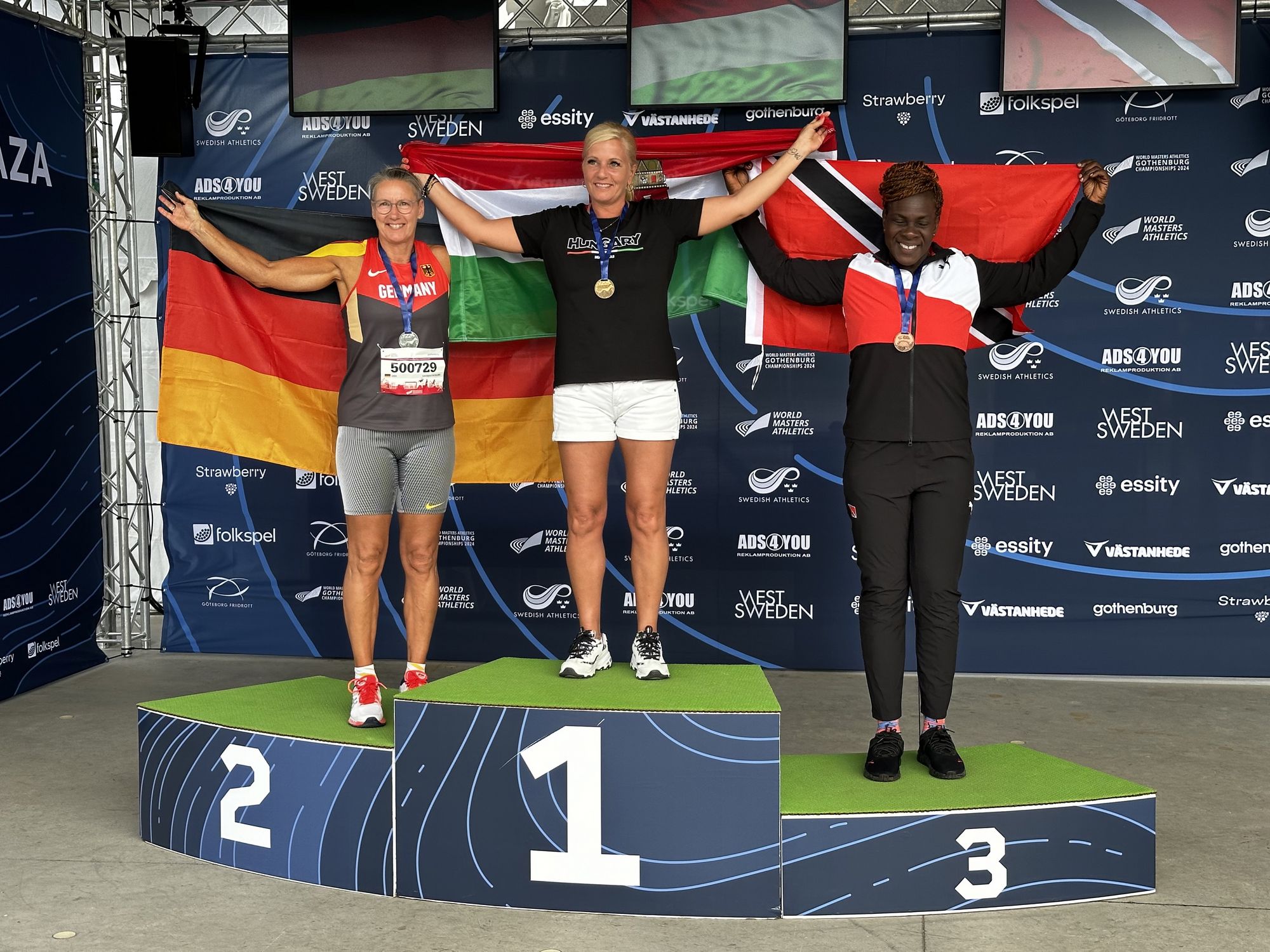 Jetzt ist sie nicht nur Vizeweltmeisterin, sondern auch Weltmeisterin. Im Wurf-Fünfkampf der W50 kam an der Athletin von der LG Kreis Verden dieses Mal wirklich keine vorbei. Insgesamt sammelte sie bei ihrem Sieg 3.573 Punkte: Im Hammerwurf wurden es 41,83m, im Kugelstoßen 11,11m, im Diskuswurf 31,06m, im Speerwurf 39,93m und im Gewichtwurf 11,71m. Im Speerwurf – ihrer Paradedisziplin – ließ sie der Konkurrenz keine Chance. Gratulation!