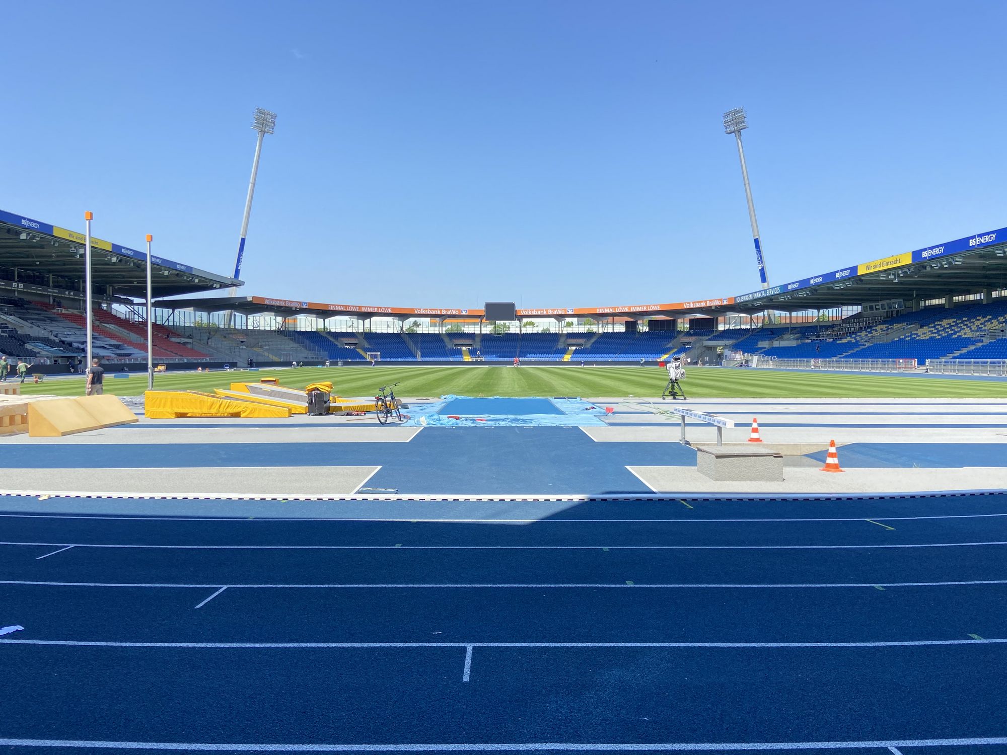 jg – Die letzten Vorbereitungen der 121. Deutschen Meisterschaften im Braunschweiger Eintracht-Stadion laufen auf Hochtouren. Eine Sprunggrube für die Weit- und Dreispringer wurde in den vergangenen Tagen parallel zur Gegengeraden extra errichtet, da das Stadion über keine herkömmliche Sprunganlage verfügt.