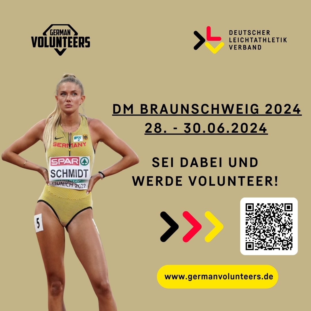 Schon 2020 und 2021 wurden zuletzt die DM-Titel in Braunschweig vergeben. Aber der Kampf um die Meisterehren 2024 wird ein ganz besonderer. Denn nach den Corona-Jahren kehren die deutschen Leichtathletik-Fans gschlossen zurück ins Braunschweiger Stadion. Und auch sie werden ganz sicher Vollgas geben, um den Leichtathlet*innen bei ihrem großen Ziel Olympia-Qualifkation eine stimmungsvolle Kulisse zu bieten. Bewirb Dich als Volunteer und sei Teil dieses außergewöhnlichen Highlights. Mit deiner Unterstützung kannst du dazu beitragen, dass die DM2024 auch in diesem Jahr erfolgreich durchgeführt werden kann. Gleichzeitig hast du die Möglichkeit packende Wettkämpfe live mitzuerleben. Bewerben kannst du dich unter nachfolgendem Link: