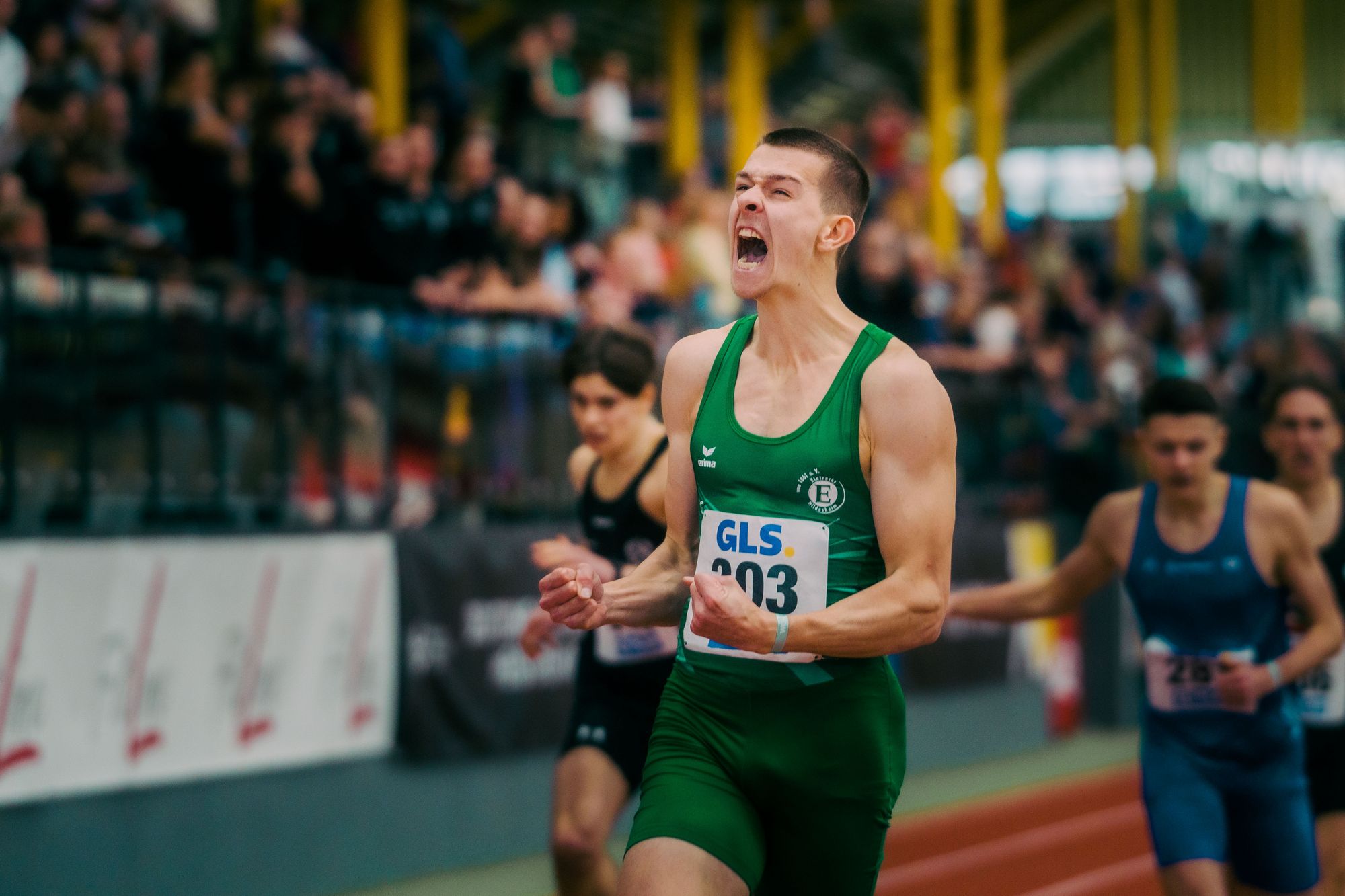 Mit einem ähnlichen Finish auf den letzten Metern konnte auch Max Husemann über 400 Meter triumphieren. Der Sprinter von der Eintracht Hildesheim holte mit einer beeindruckenden zweiten Rennhälfte den Titel in der männlichen Jugend U20 und kratzte zugleich an der 48-Sekunden-Marke. "Ich wusste, dass ich hinten raus stark bin, aber dass ich so stark bin, hätte ich nicht gedacht." Mit 48,01 Sekunden verbesserte er seine Hallenbestzeit deutlich und unterbot auch seine Freiluftbestleistung von 48,14 Sekunden. Vor zwei Wochen lief er noch eine 49,09. Ganz zufrieden war der 18-jährige aber trotzdem nicht: "Eine 47 vorne hätte schöner ausgesehen." Die kann er sicherlich noch ein paar Mal angreifen, wenn es in die Freiluftsaison und in Richtung U20 Weltmeisterschaften in Peru geht, wo er die kommende Saison krönen möchte (Das komplette Rennen im Video).
